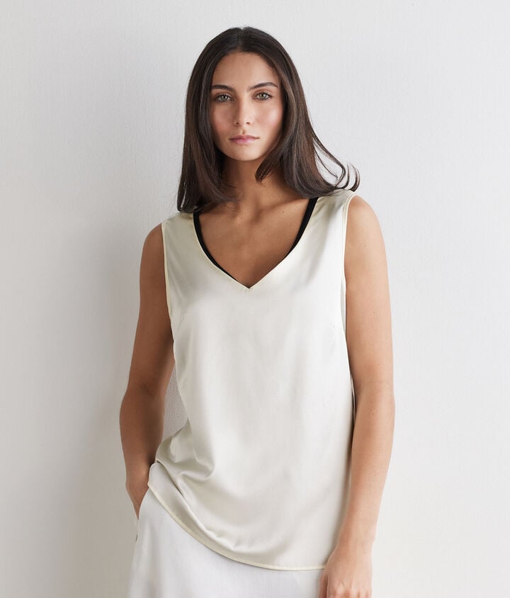 Seiden-Tanktop mit V-Ausschnitt€ 98,00Wählen Sie Ihre Farbe ausPannaPERLMUTTGRAU HELLBlu navy+ 5Ausgewählte Farbe: Panna