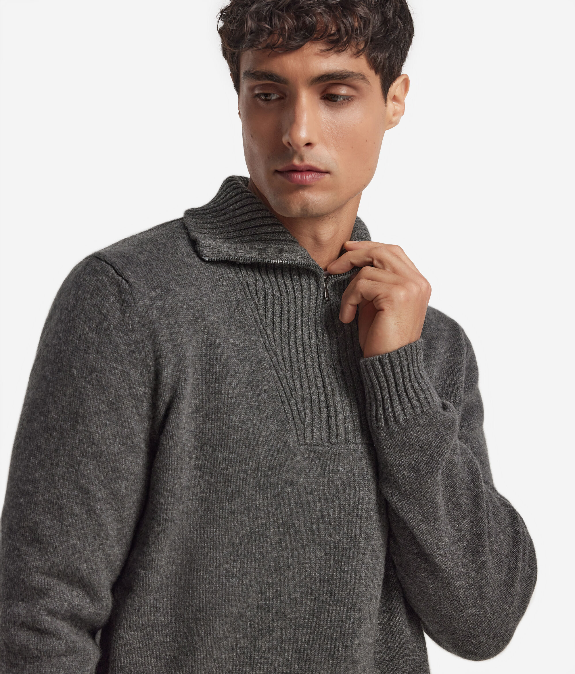 Gerippter Pullover mit Reißverschluss aus Kaschmir Ultrasoft