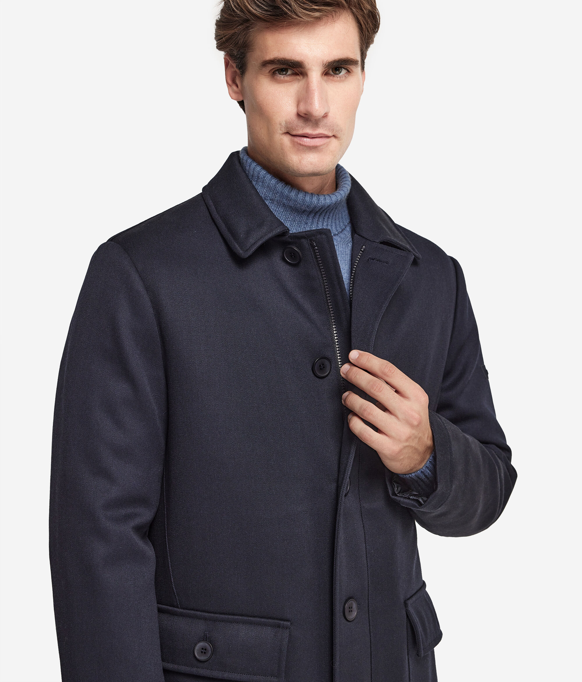 Entdecken Sie die Eleganz und die Weichheit dieses Mantels aus Wolle mit wasserabweisender Beschichtung, um auch für kühlste Tage perfekt und stilvoll gewappnet zu sein. Die innere Daunenfüllung mit einem Futter aus Funktionsmaterial sorgt für Funktionalität und perfekten Wärmeschutz. Das Design wird außerdem von Innen- und auch Außentaschen ergänzt, die dem Mantel einen modernen Touch verleihen. Die perfekte Balance zwischen klassisch und modern in Verbindung mit den verwendeten edlen Materialien sorgt für ein elegantes und bequemes Kleidungsstück, das jede Garderobe mit dezentem und dennoch zeitlosem Luxus aufwertet.