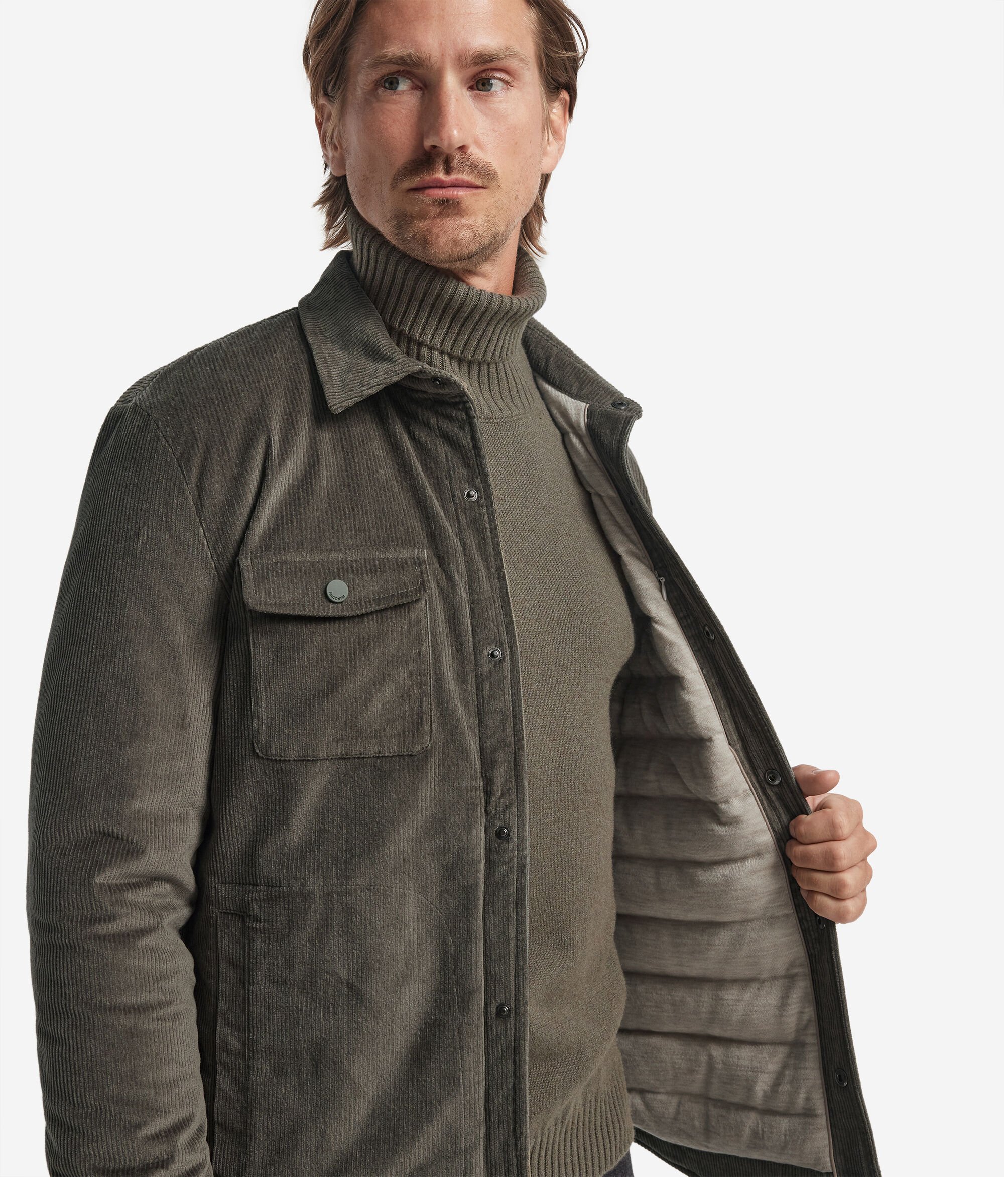 Dieses Overshirt vereint die Eleganz des Baumwollsamts mit der Funktionalität eines Kleidungsstücks, das perfekt für die Übergangszeit geeignet ist. Der Hemdkragen und die Knopfleiste vorne definieren einen ausdrucksstarken und vielseitigen Look. Die strukturierten Bündchen und die seitlichen Taschen sowie die aufgesetzten Brusttaschen mit einem praktischen Touch vervollständigen das Design. Die gesteppte Innenseite aus Kaschmir Ultrafine sorgt für Schutz, während die weich fallende Passform entspannte und moderne Eleganz bietet.
