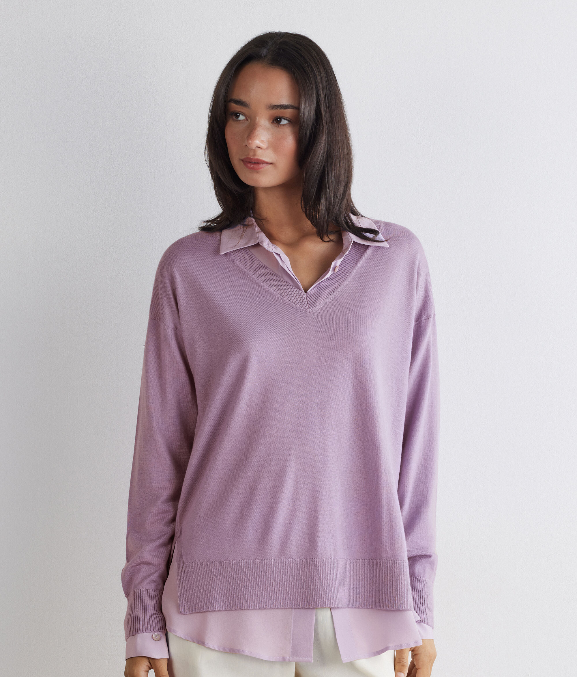 Pullover mit V-Ausschnitt und Schlitzen aus Kaschmir