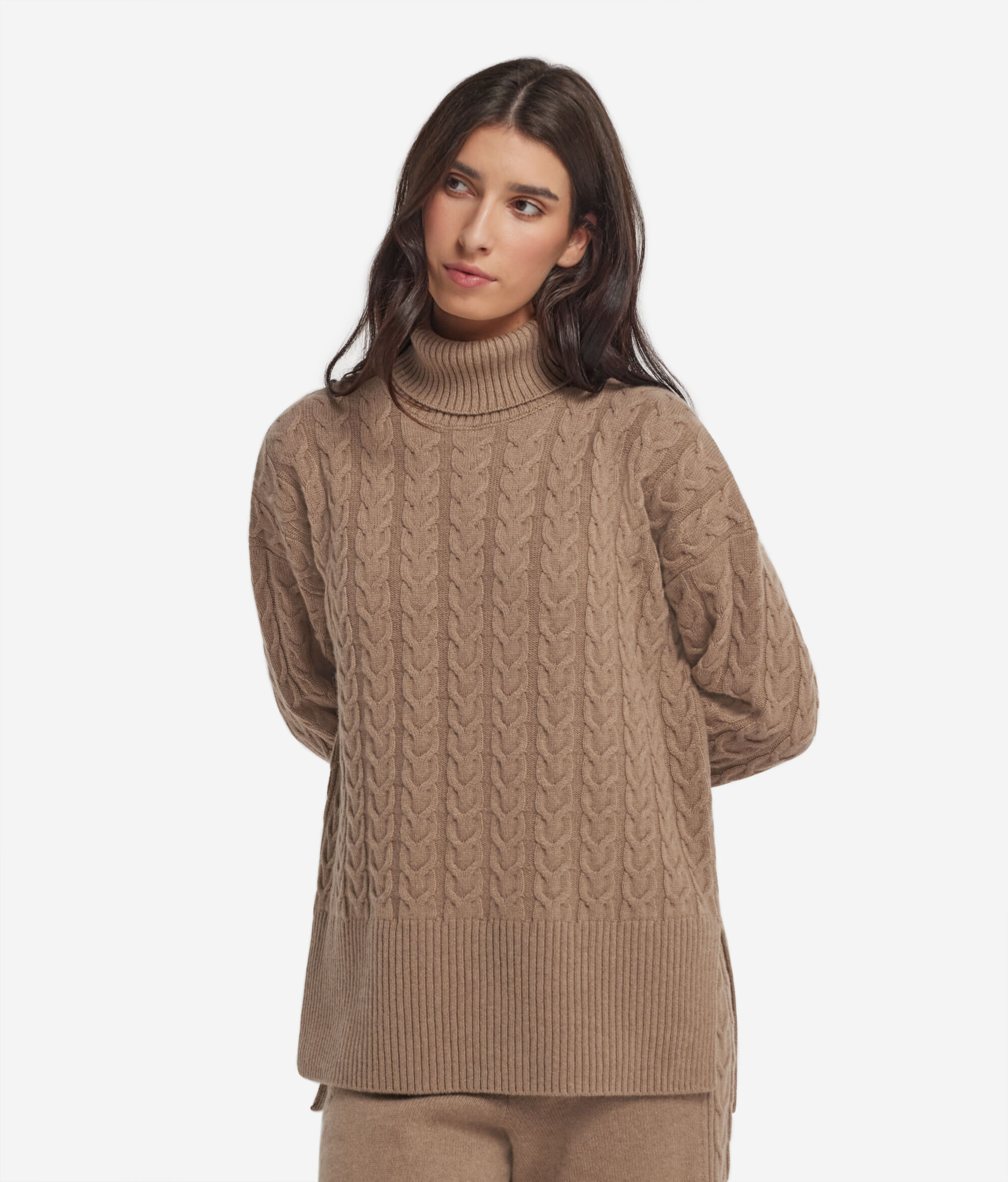 Rollkragen mit Zopfmuster aus Kaschmir Ultrasoft