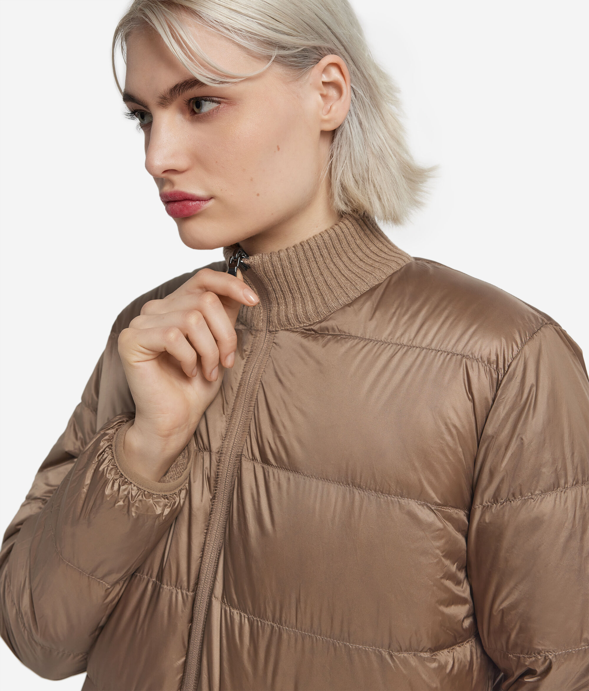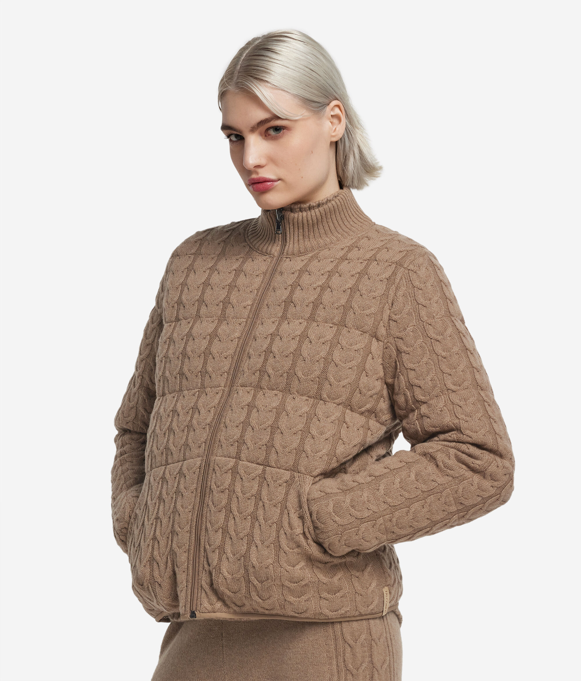 Wendedaunenjacke mit Zopfmuster aus Kaschmir und Funktionsgewebe