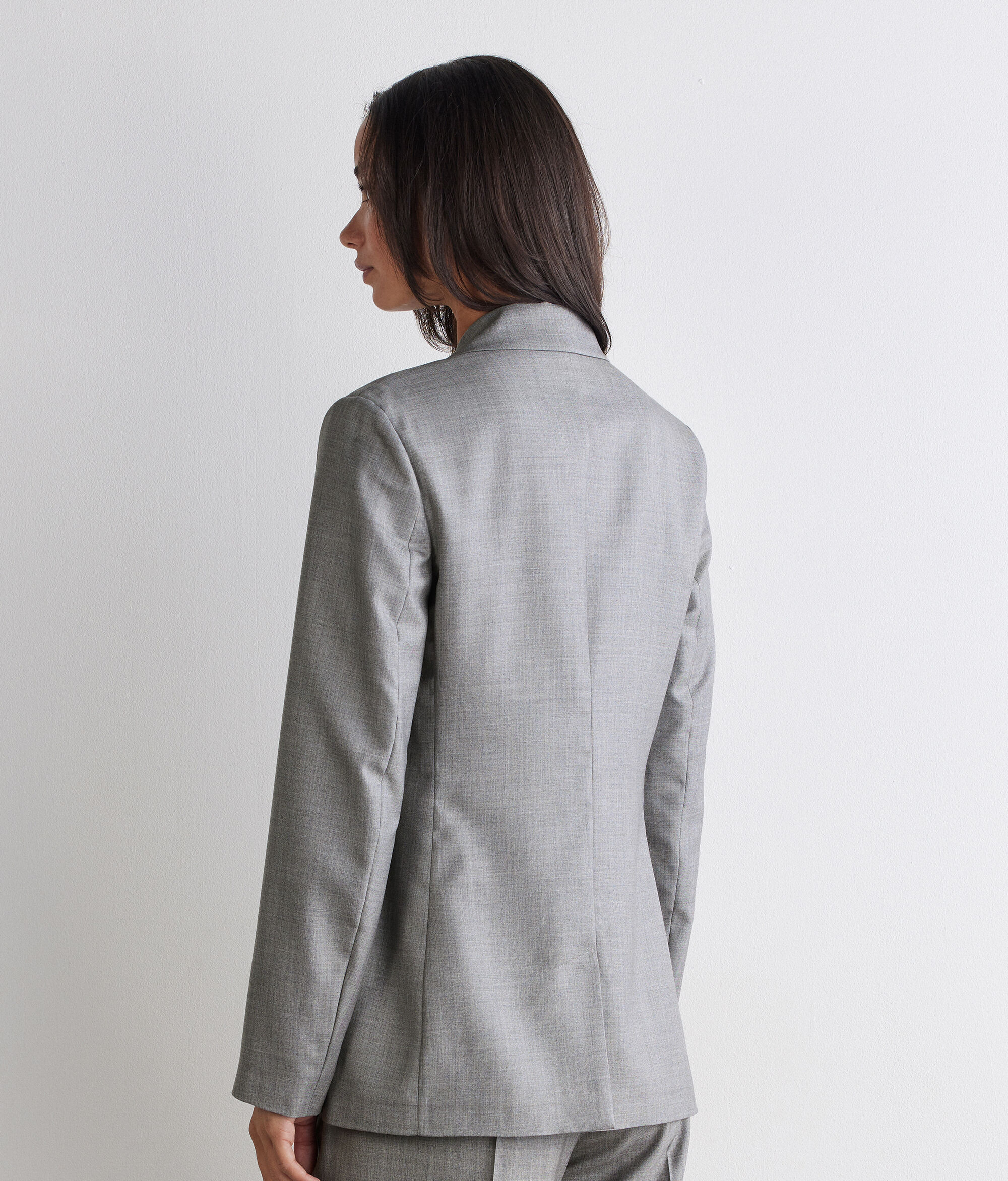 The synthesis of elegance and charm: This cashmere silk jacket envelops the figure with sheen and exquisite softness. The single-breasted, two-button design creates a harmonious silhouette, finished with double welt pockets and a slit at the back; the slim fit adds refined and contemporary allure.