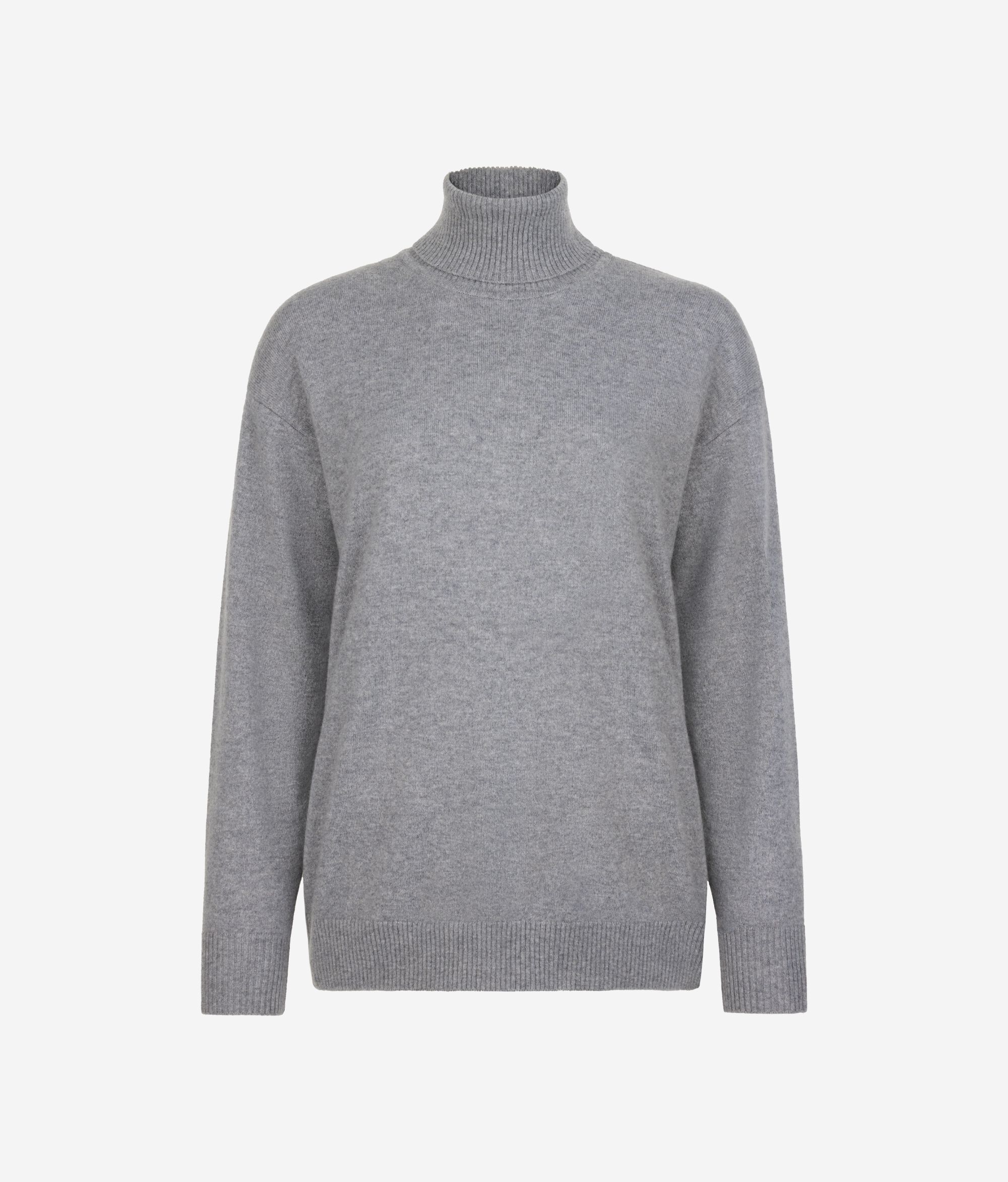 Ultrasoft Cashmere turtleneck. The design of the garment features slightly dropped shoulders, ribbing on the neckline, cuffs and hem, and slits at the bottom. Relaxed fit.