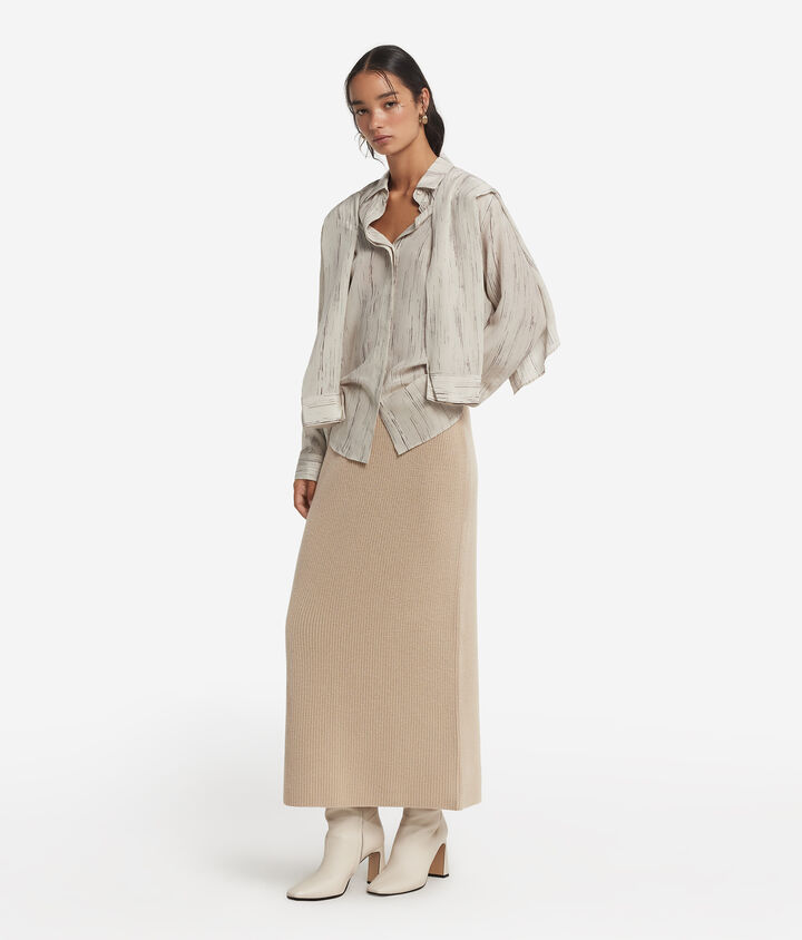 New inRibbed wool skirt278,00 €Select your colourBeige CordaDark Grey MelangeMarsala BrownSelected color: Beige Corda