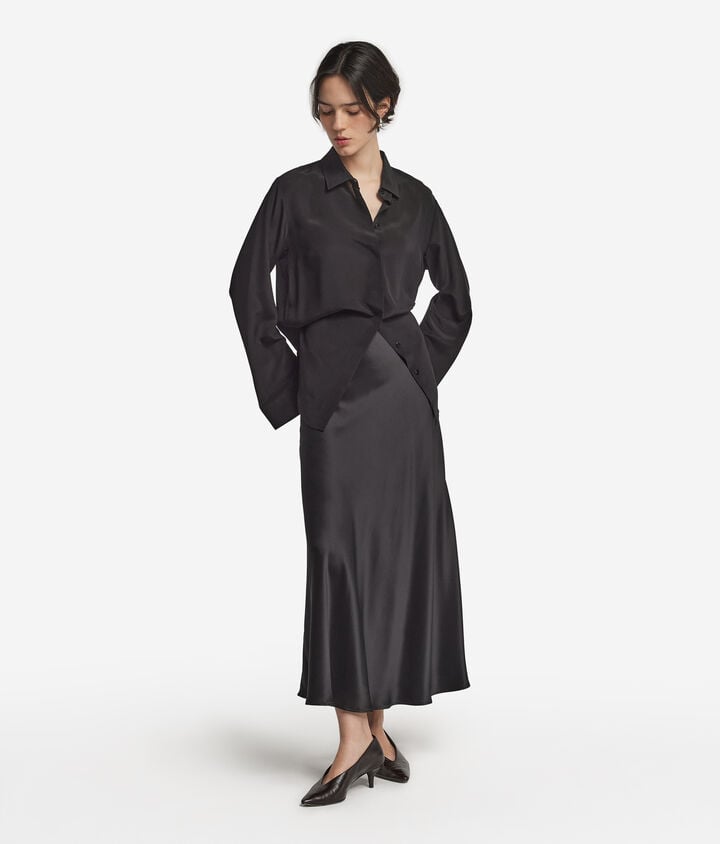 Silk Satin Skirt298,00 €Select your colourBlackLIGHT MOTHER-OF-PEARL GREYWHEAT+ 3Selected color: Black