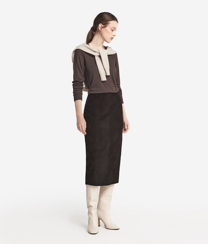 New inRibbed wool skirt278,00 €Select your colourDark Grey MelangeBeige CordaMarsala BrownSelected color: Dark Grey Melange