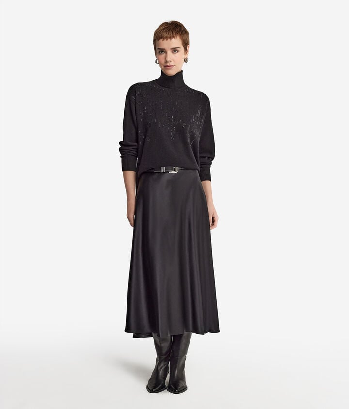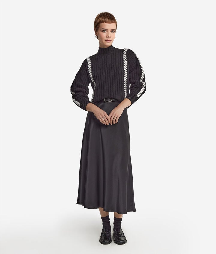 Embroidered Turtleneck Jumper with Ribbed Pattern in Ultrasoft Cashmere