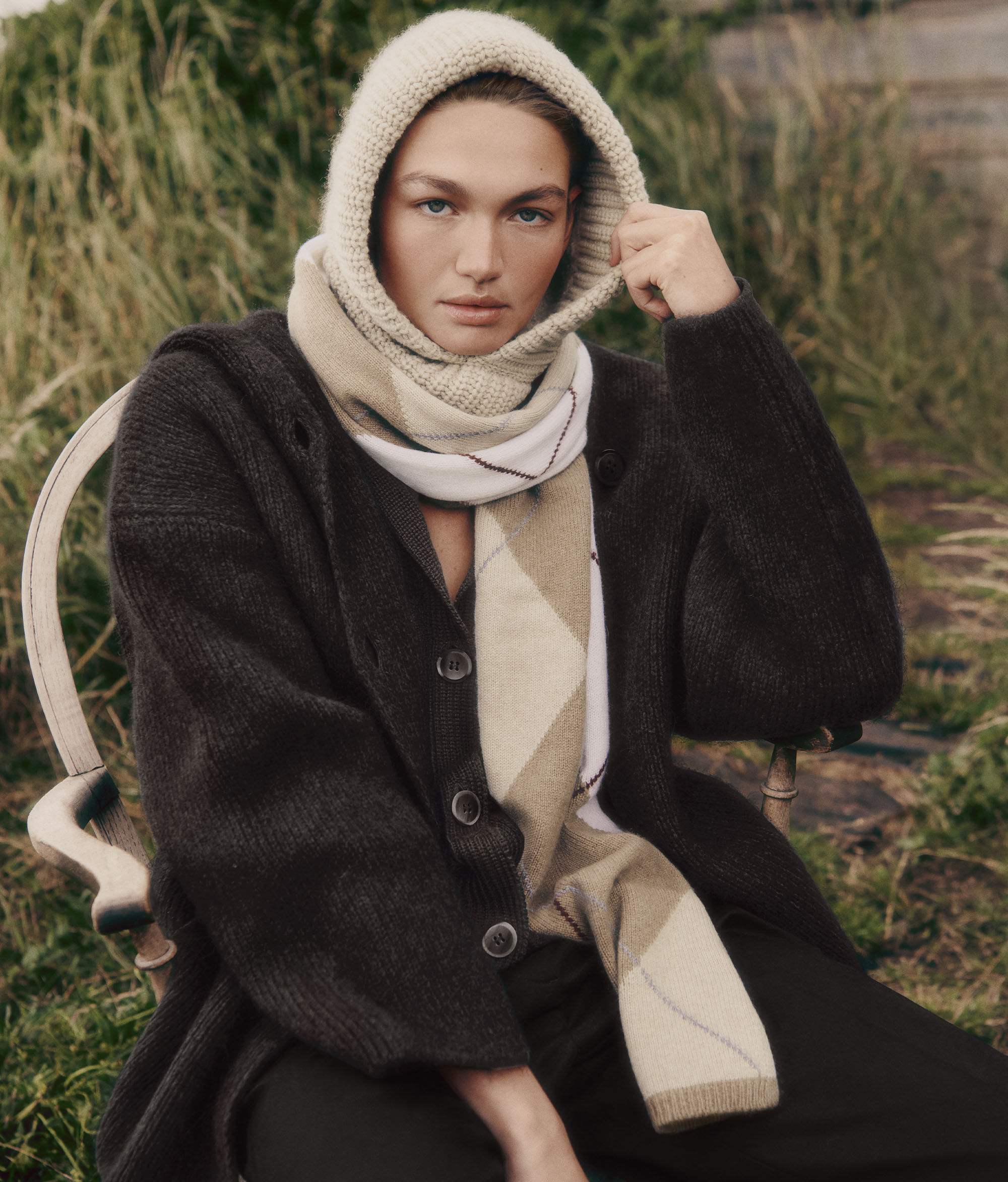 Oversize-Blazer aus Wolle mit Fischgrätmuster