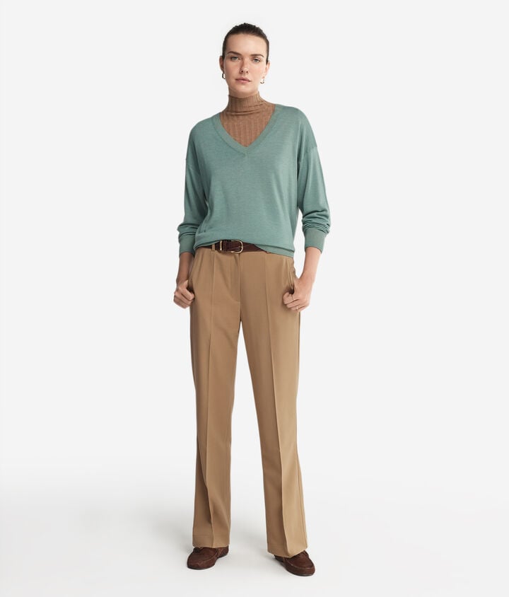 Pull à col V et fentes en cachemire