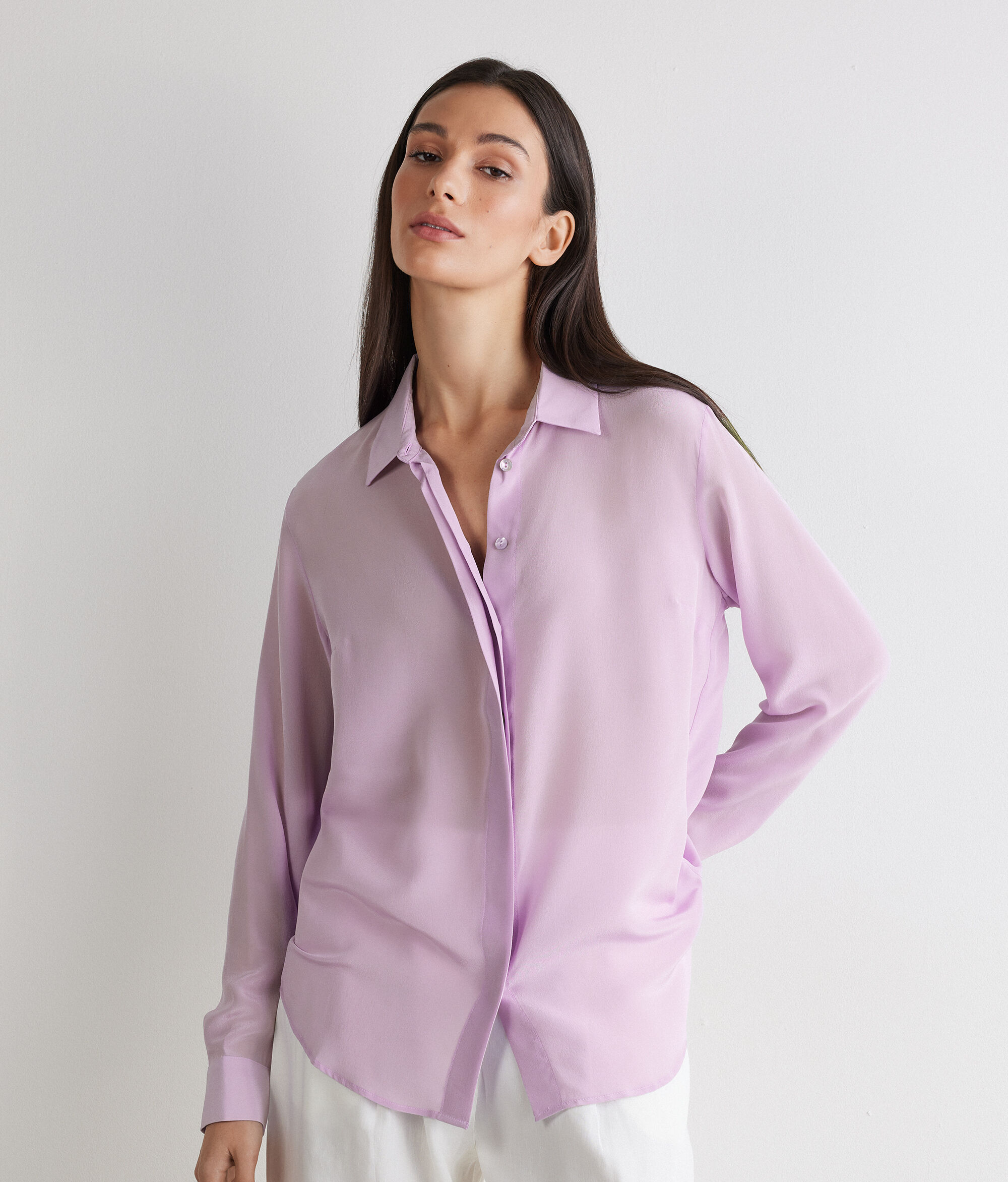 Adoptez l'élégance intemporelle de cette chemise en crêpe de Chine. Ses lignes épurées sont sublimées d'un col classique et d'une fermeture à boutons. Sobre mais raffinée, cette pièce distinguée allie style et qualité, sans aucun compromis.