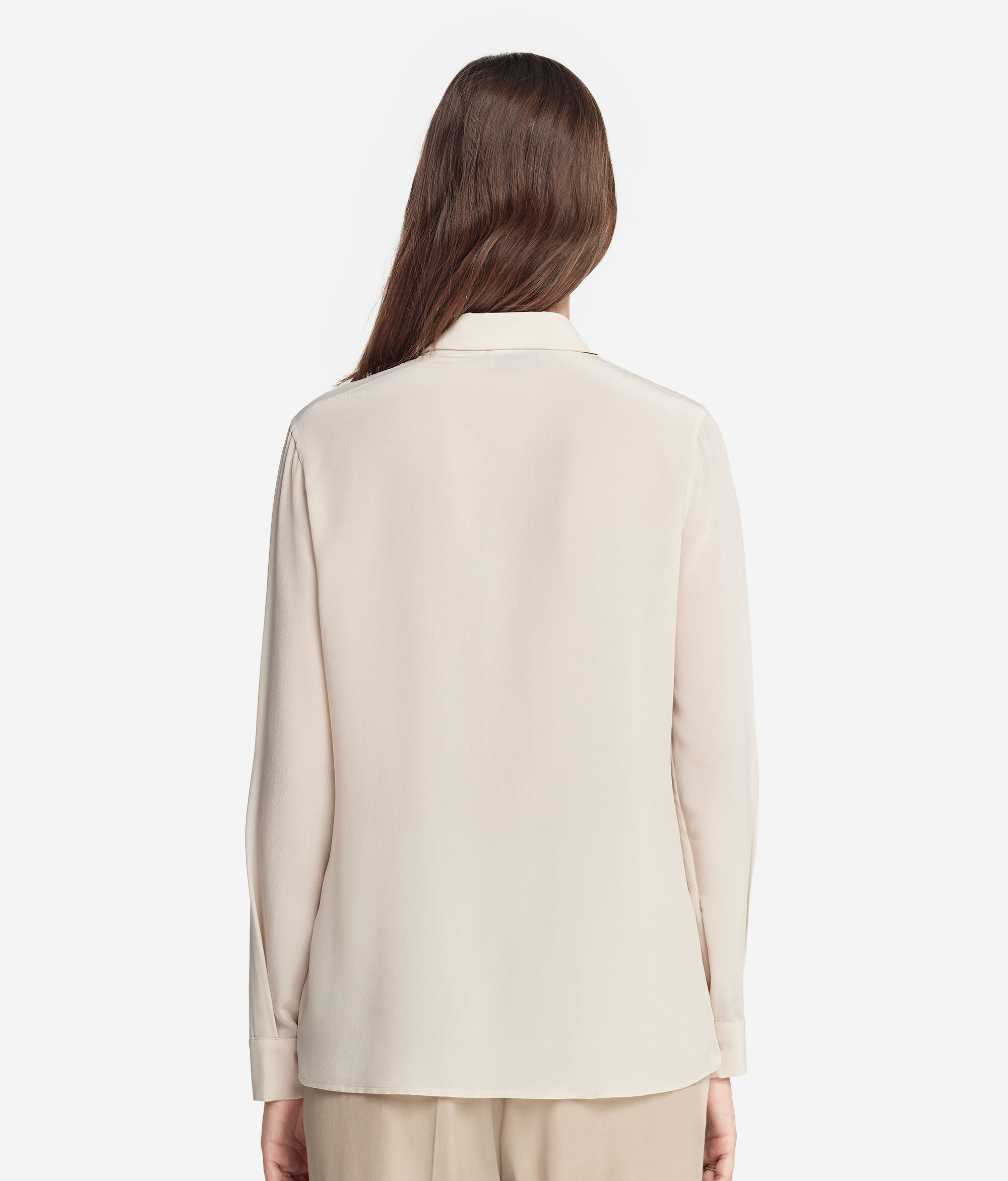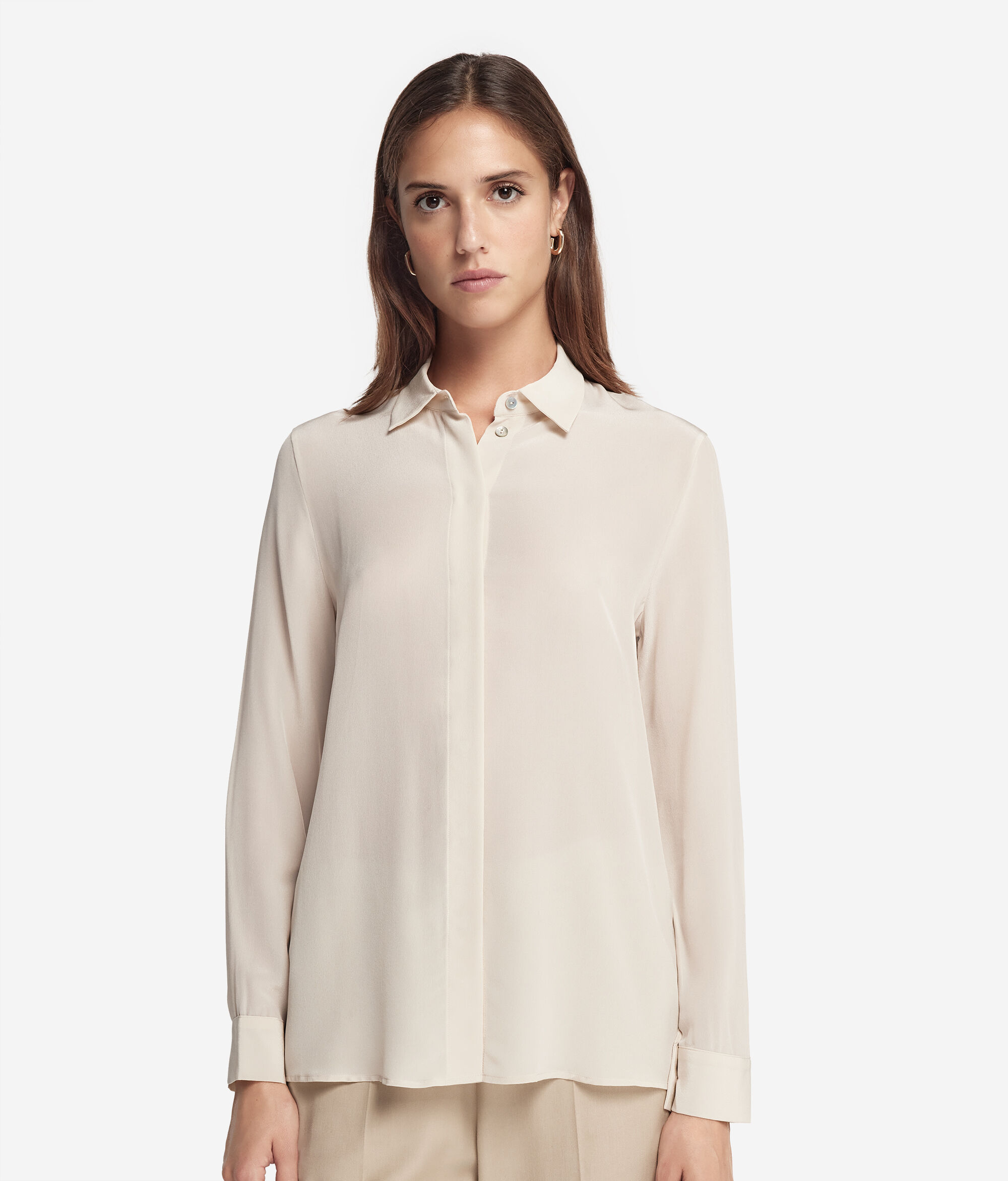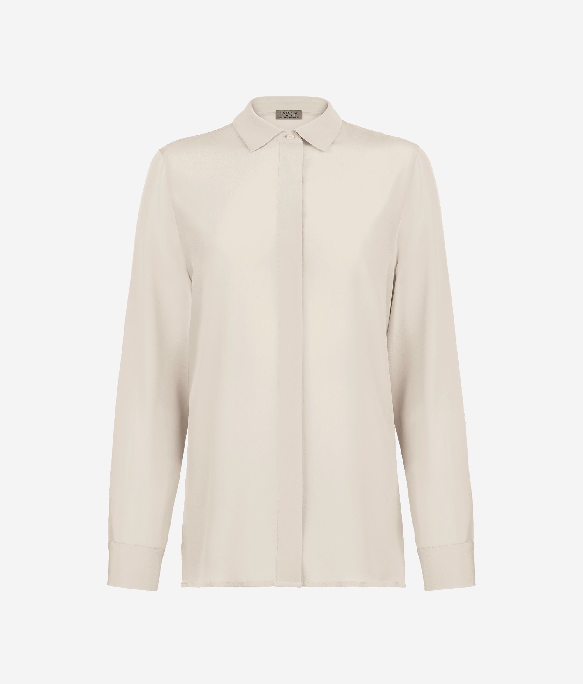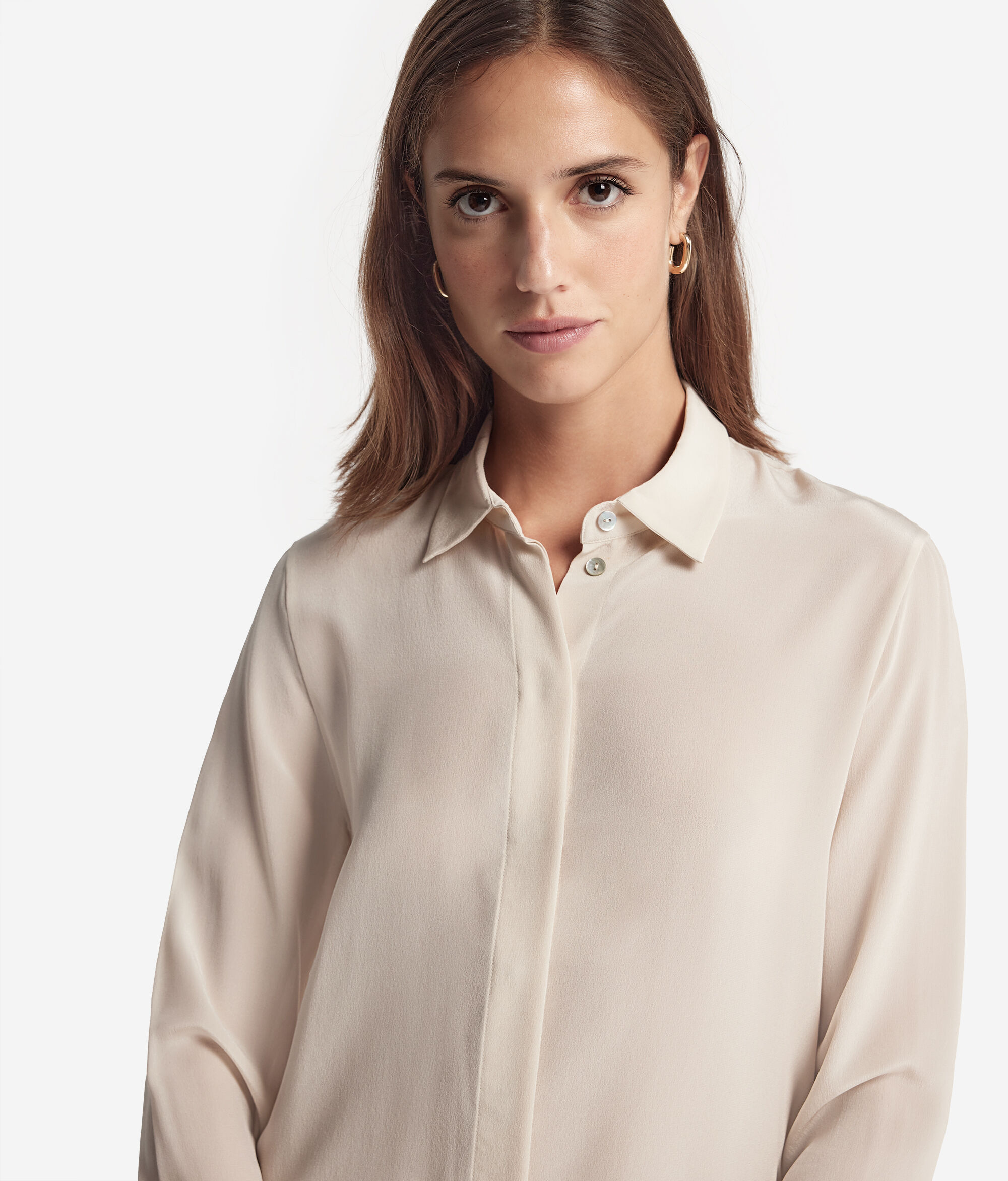 Confectionnée en pure soie, cette chemise pour femme associe élégance et confort grâce à une texture fluide et délicate sur la peau. Sa coupe standard sublime la silhouette avec un tombé naturel, tandis que son col classique lui confère une allure sophistiquée. Elle se ferme à l’aide de petits boutons assortis au tissu, soulignant la finesse des détails, et se ferme également au niveau des poignets avec un bouton identique qui ajoute une touche structurée au modèle. Sa coupe légèrement arrondie au dos, assure un tombé harmonieux et une aisance parfaite au porté. Son design épuré, rehaussé par une teinte unie intemporelle, en fait un incontournable du vestiaire féminin. Cette chemise en soie pour femme Falconeri se prête à toutes les occasions. Portez-la avec un jean brut et des mocassins pour un look décontracté chic ou associez cette chemise élégante à un pantalon habillé et des escarpins pour une silhouette plus sophistiquée.
