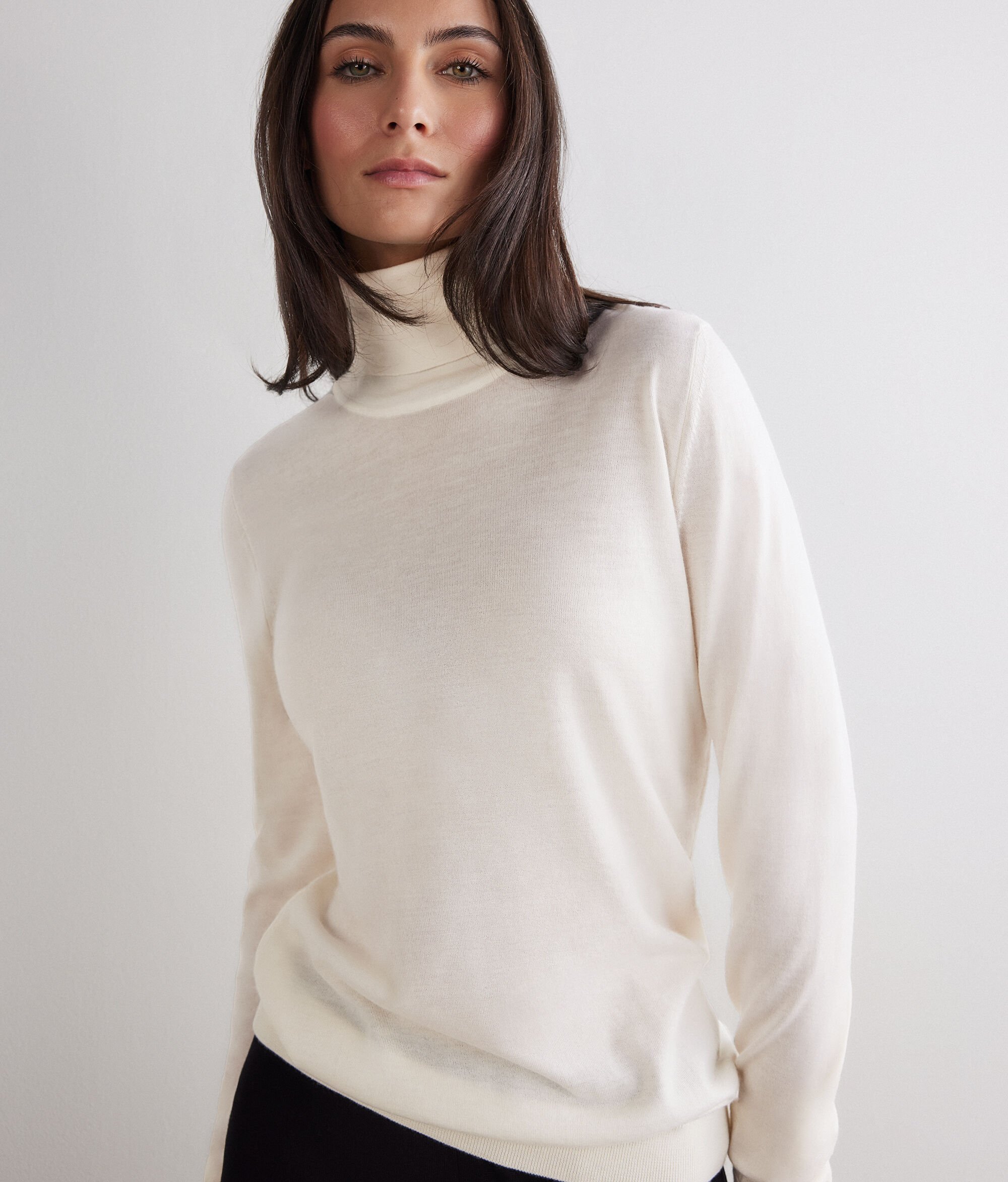Ce pull col roulé en cachemire pour femme est conçu en cachemire ultra-fin, offrant une sensation de légèreté et de douceur exceptionnelle. Son tricot côtelé, subtilement travaillé au niveau du col roulé, des poignets et du bas, ajoute une touche de raffinement tout en assurant une excellente tenue. La coupe standard de ce pull à col roulé femme est élégante et intemporelle, parfaite pour créer un look chic et sophistiqué. Les manches resserrées au niveau des poignets assurent une coupe moderne et ajustée, tout en permettant une grande liberté de mouvement. Ce col roulé léger est une pièce essentielle pour celles qui recherchent à la fois confort et élégance. Ce pull à col montant pour femme s'adapte à toutes les occasions. Il est parfait pour l'hiver, porté seul lors de journées plus douces ou sous un pull plus épais quand les températures chutent. Ce pull à col roulé en cachemire fin pour femme de Falconeri est un choix élégant et pratique qui allie luxe et confort. Associez-le à un jean ou un pantalon habillé pour un look impeccable, ou à un legging pour une allure plus décontractée et chic.