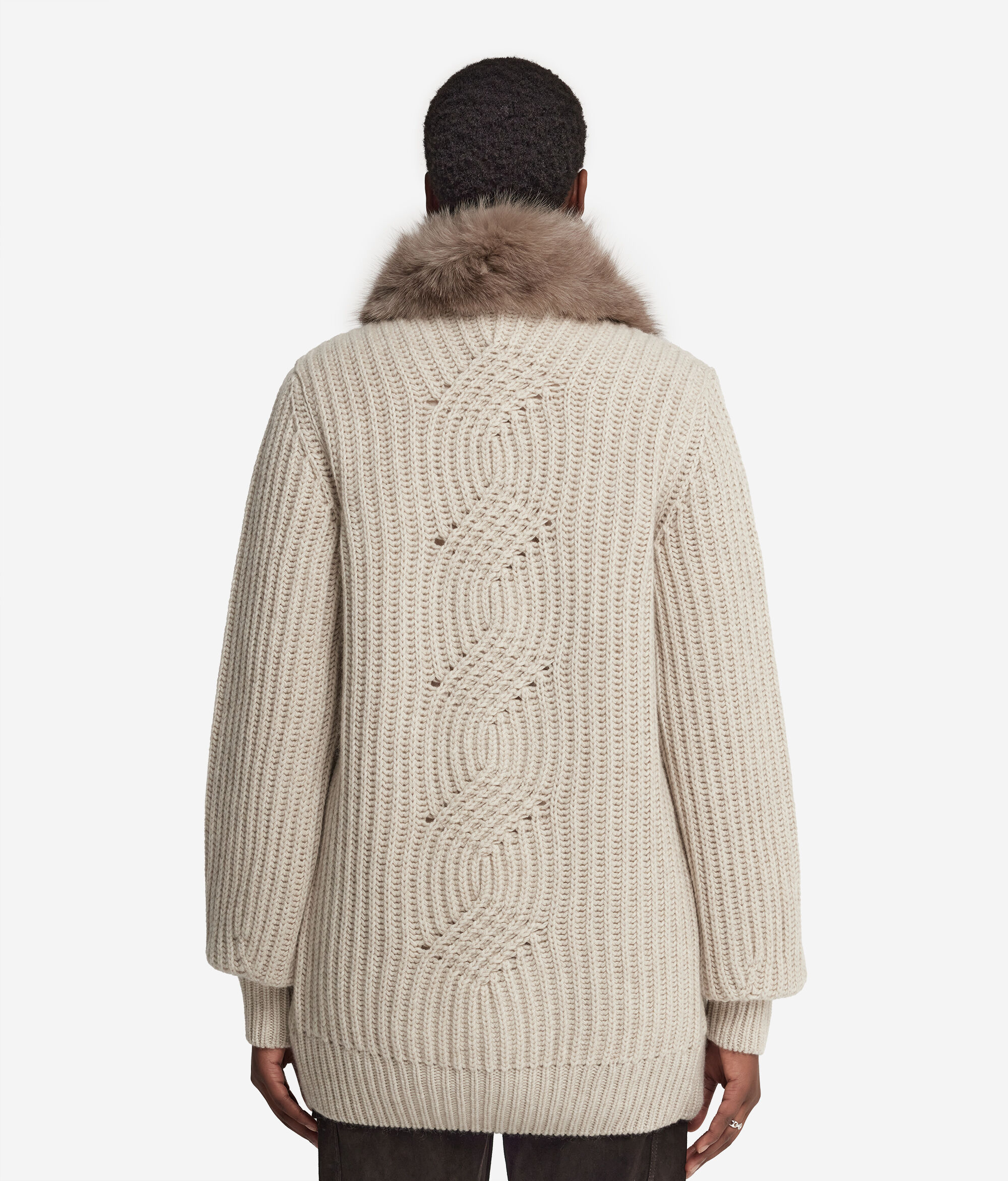 Manteau côtelé en cachemire et fourrure