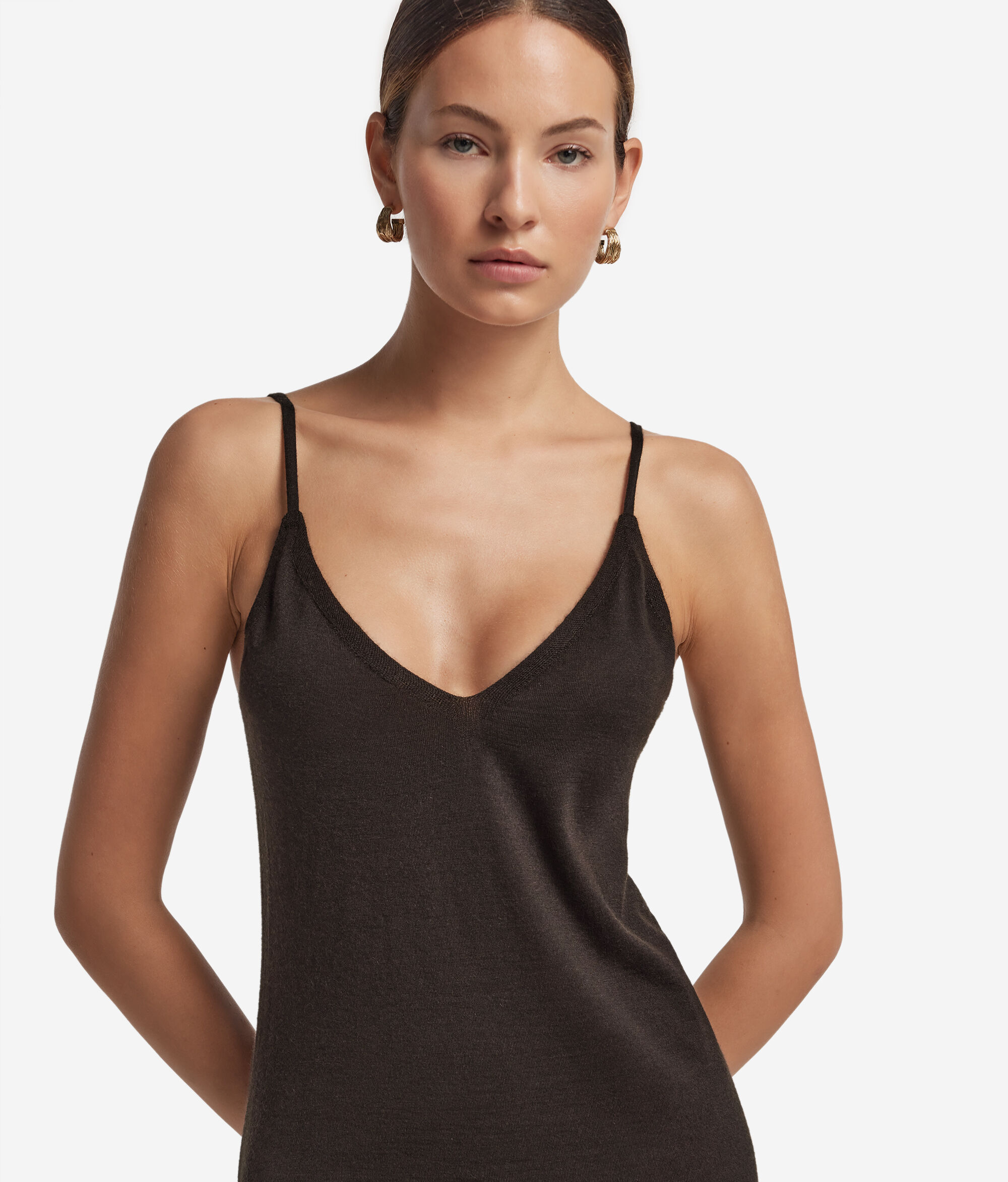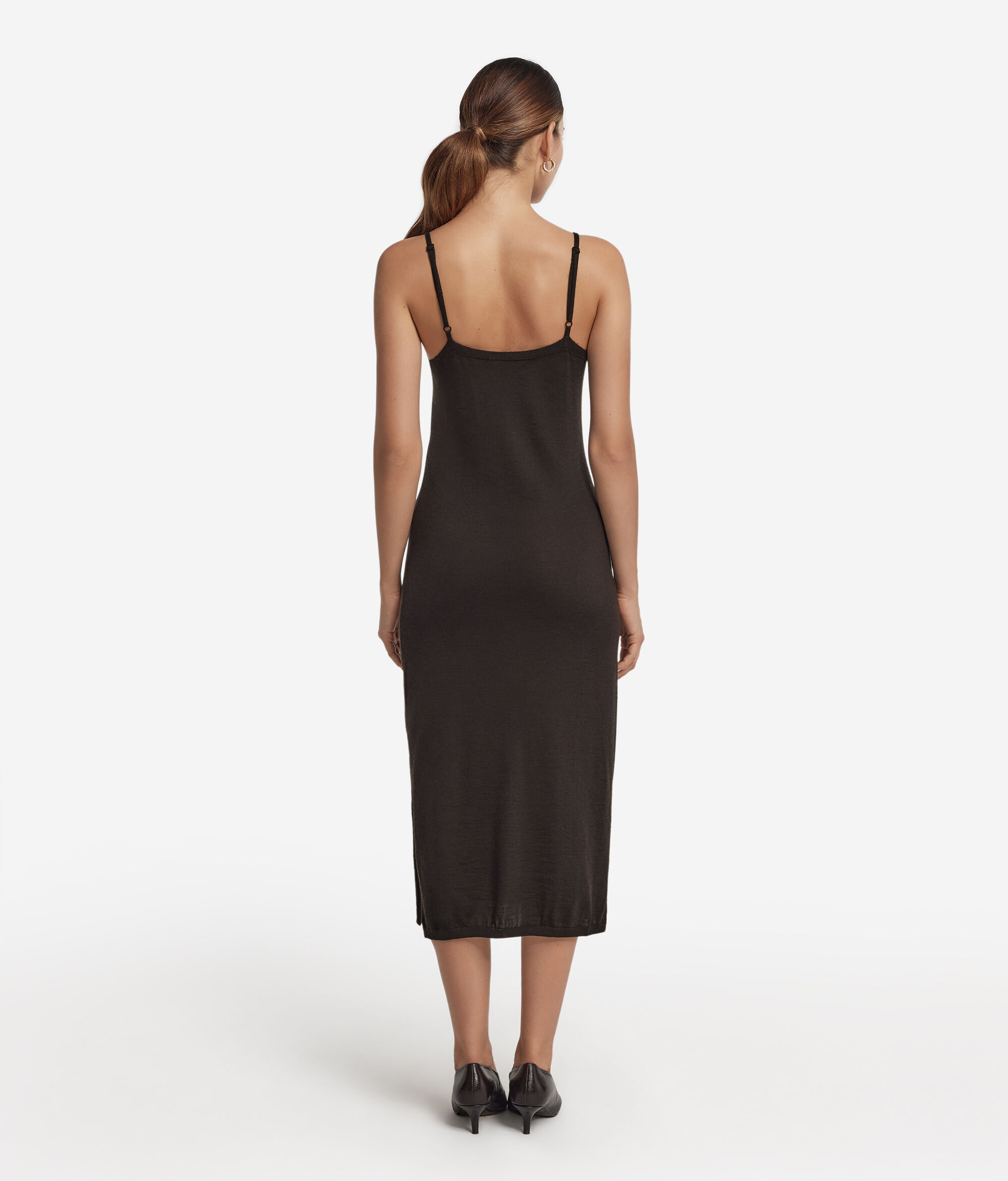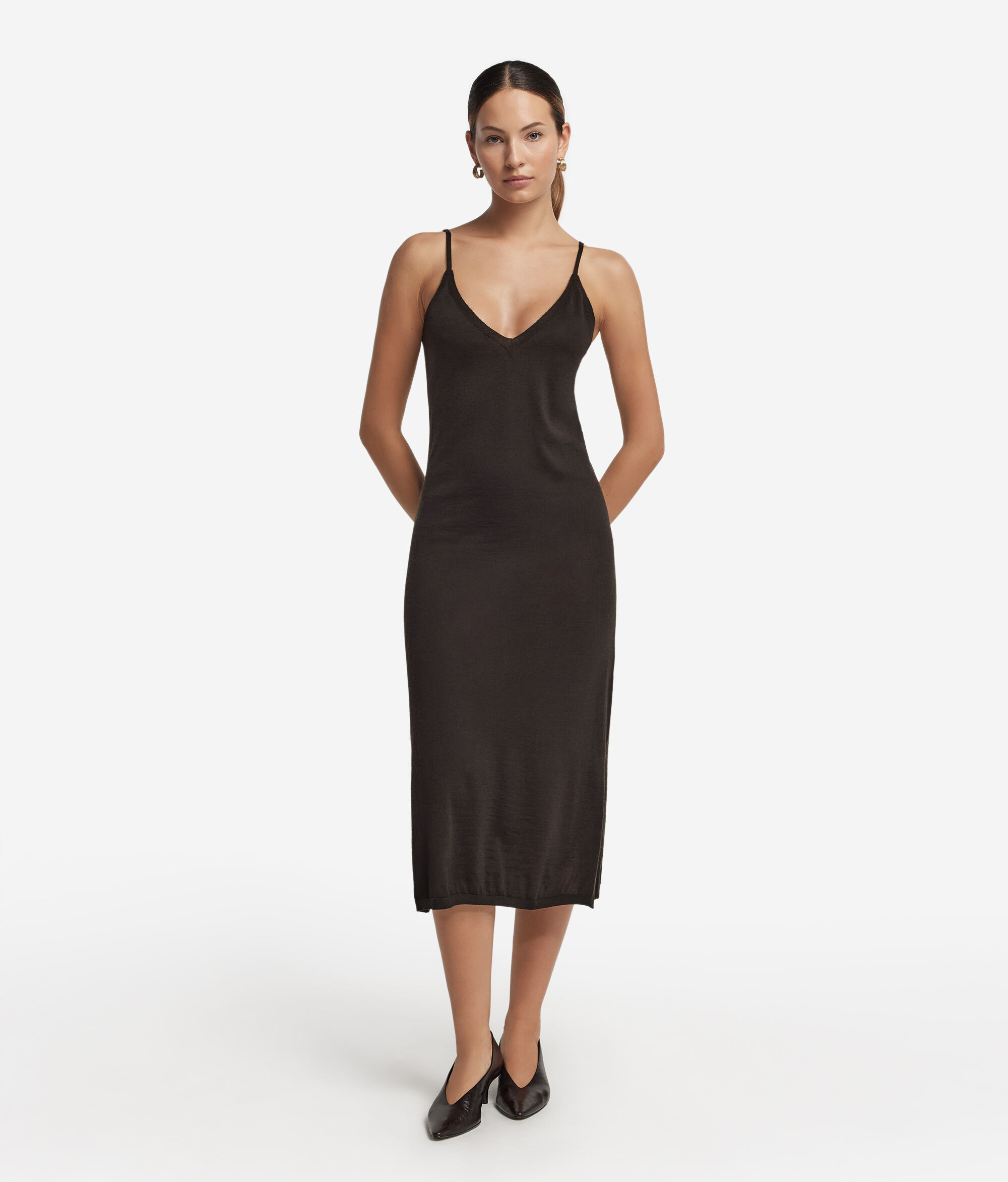 Cette robe simple raffinée en cachemire ultra-fin se caractérise par un élégant décolleté en V et une longueur au-dessous du genou. Ce modèle utilisable comme fond de robe arbore des lignes épurées sublimant la silhouette, tandis que des fentes latérales lui insufflent une touche de mouvement et de féminité. Des bretelles fines réglables et des détails rehaussés de finitions côtelées apportent une touche de texture et de définition à cette pièce minimaliste et contemporaine.