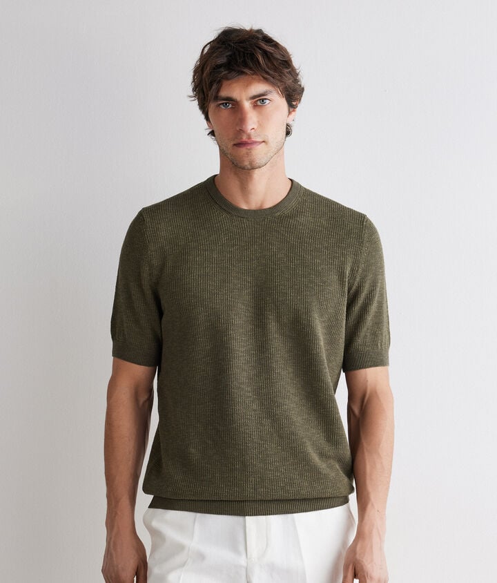 Neu T-Shirt aus Baumwolle mit Waffelmuster238.00 CHFWählen Sie Ihre Farbe ausJungelStoneBluAusgewählte Farbe: Jungel