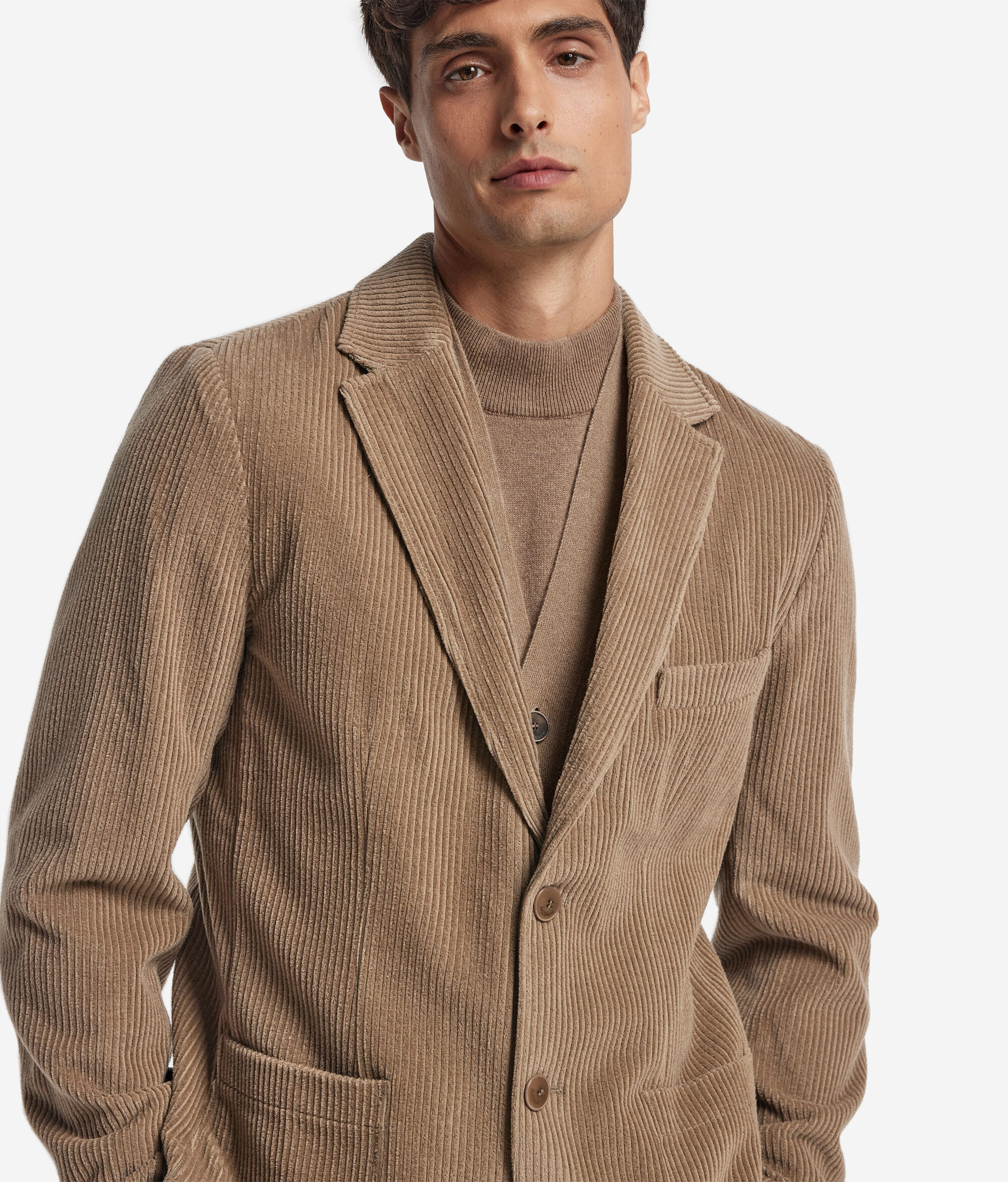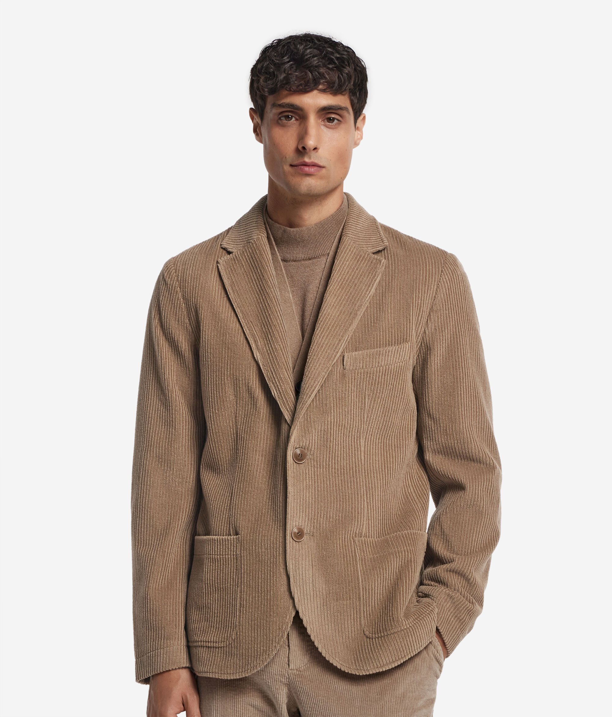 Raffinata e intramontabile, questa giacca interpreta con equilibrio perfetto l’incontro tra stile e tessuti pregiati. Il rever classico e l’abbottonatura centrale disegnano una silhouette impeccabile, valorizzata dallo spacco posteriore che garantisce portamento e comfort. L’accuratezza sartoriale emerge nei dettagli interni, come la paramontura con taschino a filetto, mentre le tasche applicate sui fianchi aggiungono una nota di funzionalità elegante.