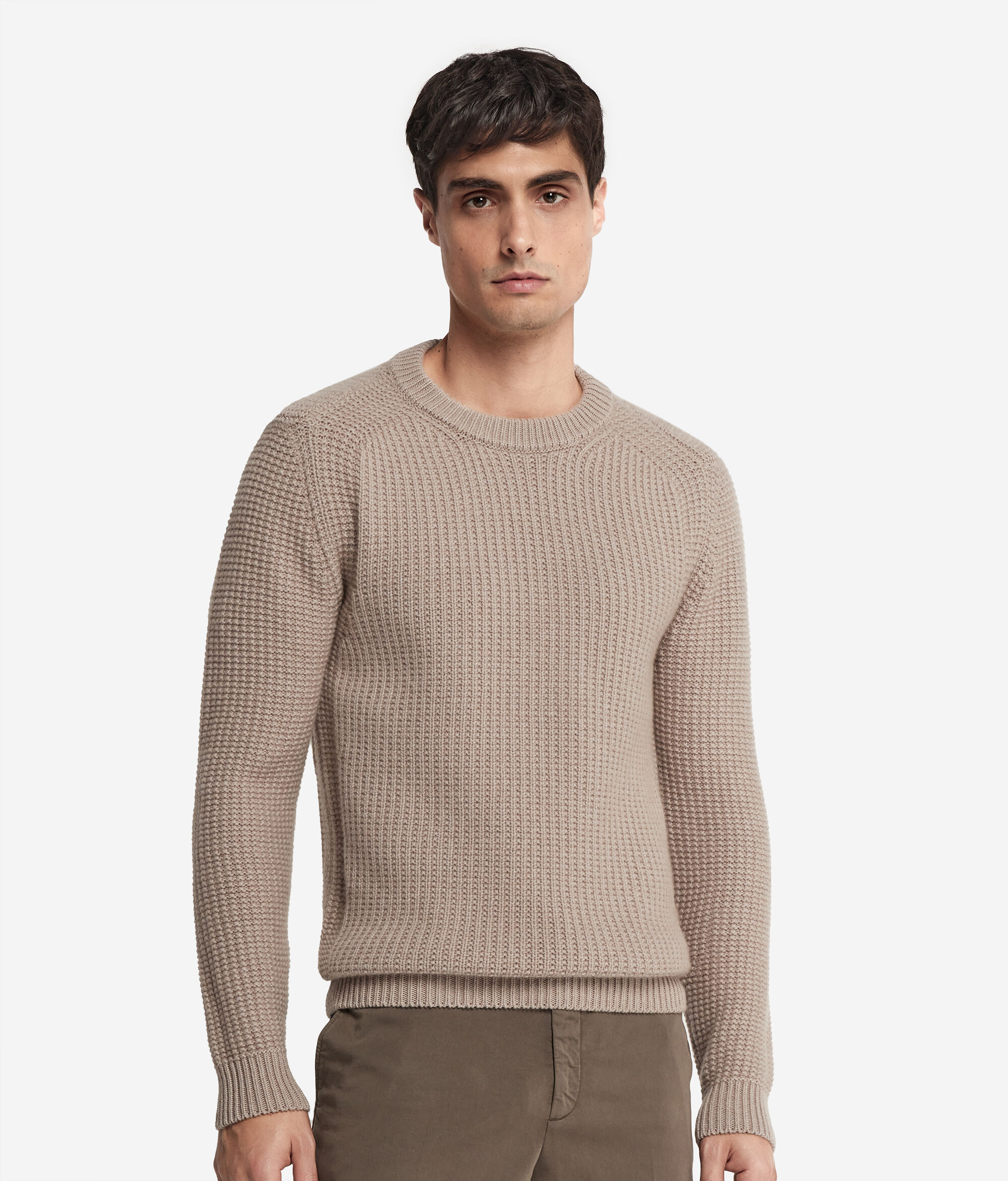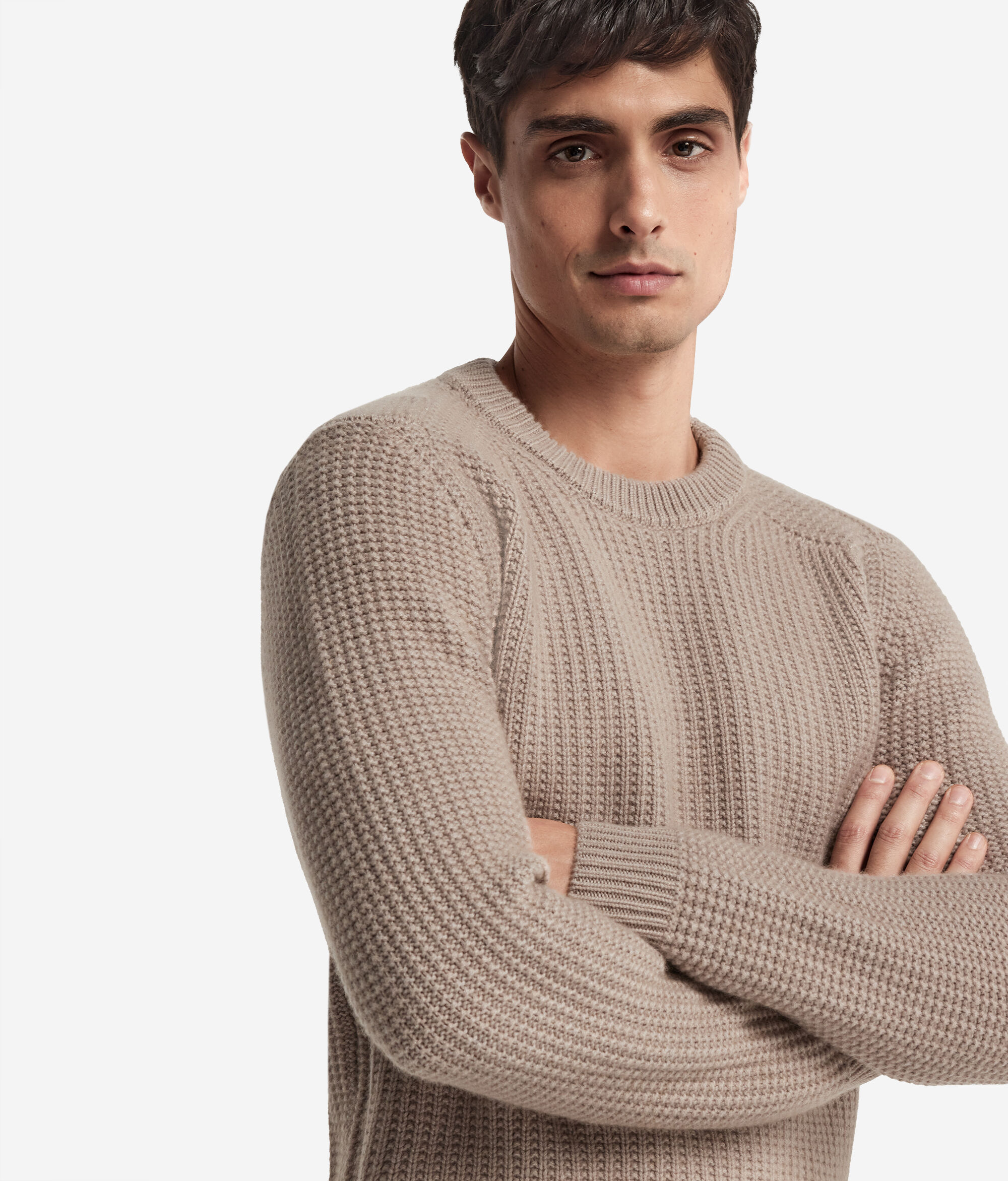 Realizzato interamente in soffice Cashmere Ultrasoft, questo girocollo unisce eleganza e stile casual in un unico capo. Il raffinato motivo a coste e punto nodo valorizza la qualità del filato con una texture esclusiva e tridimensionale. Il design si distingue per il dettaglio sartoriale delle spalle avanzate che aggiungono un tocco di modernità e maestria artigianale.