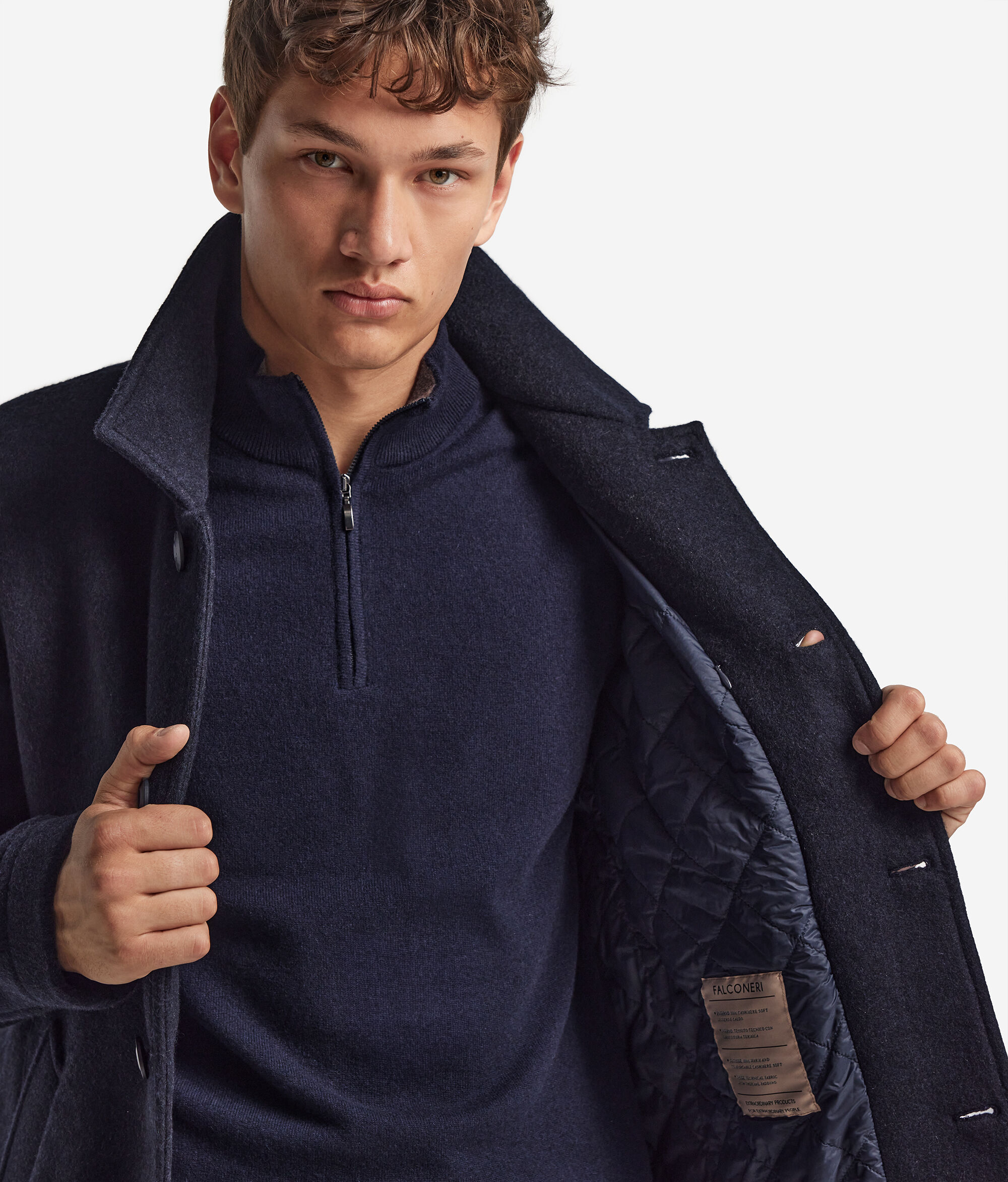 Realizzata in morbido cashmere, questa giacca unisce raffinatezza e praticità grazie all’interno in tessuto tecnico trapuntato, pensato per offrire calore e protezione. Il colletto strutturato e l’abbottonatura centrale definiscono un design classico e curato. Tasche a filetto e spacco posteriore aggiungono funzionalità, mentre la vestibilità regolare assicura uno stile disinvolto e versatile.
