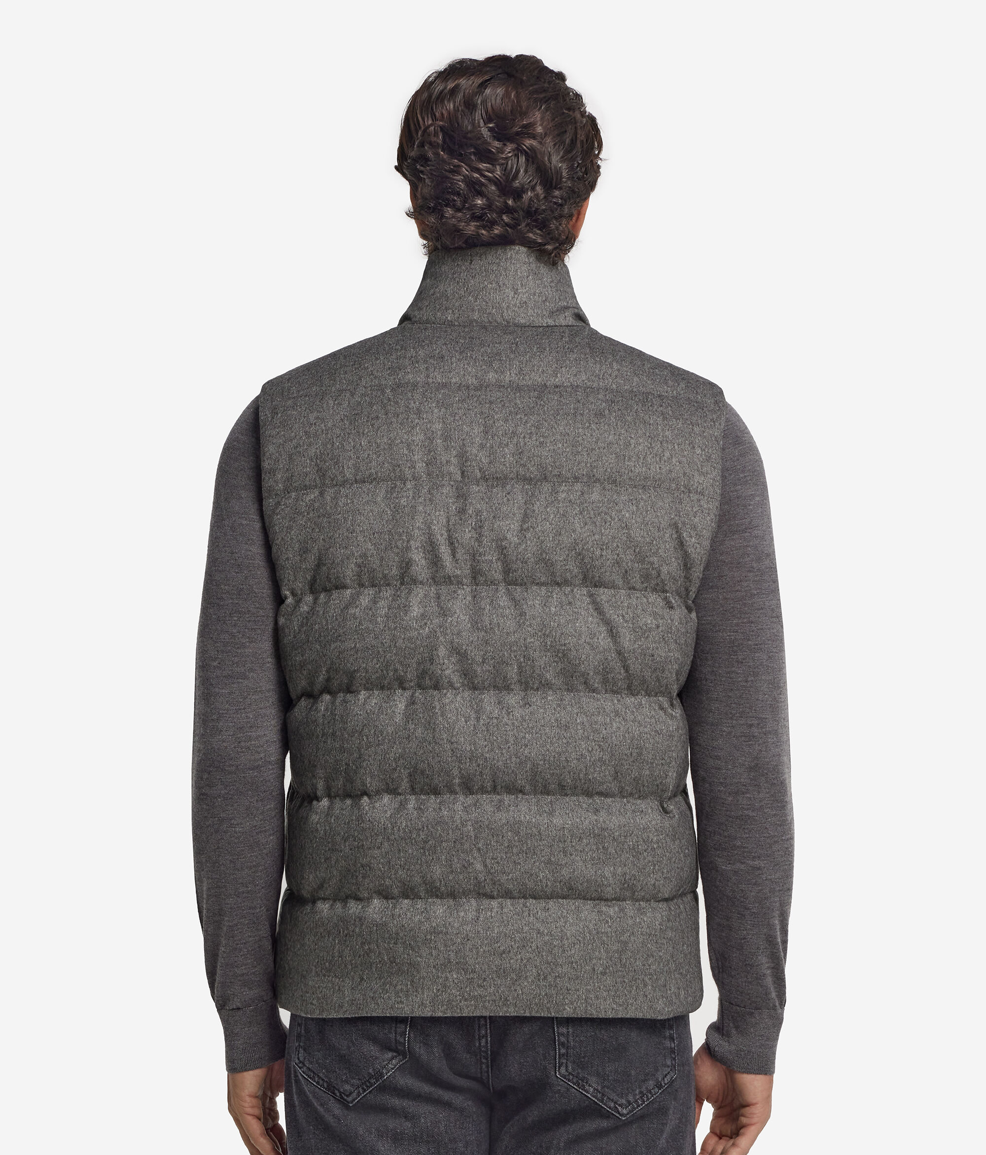 Piumino smanicato in cashmere e seta