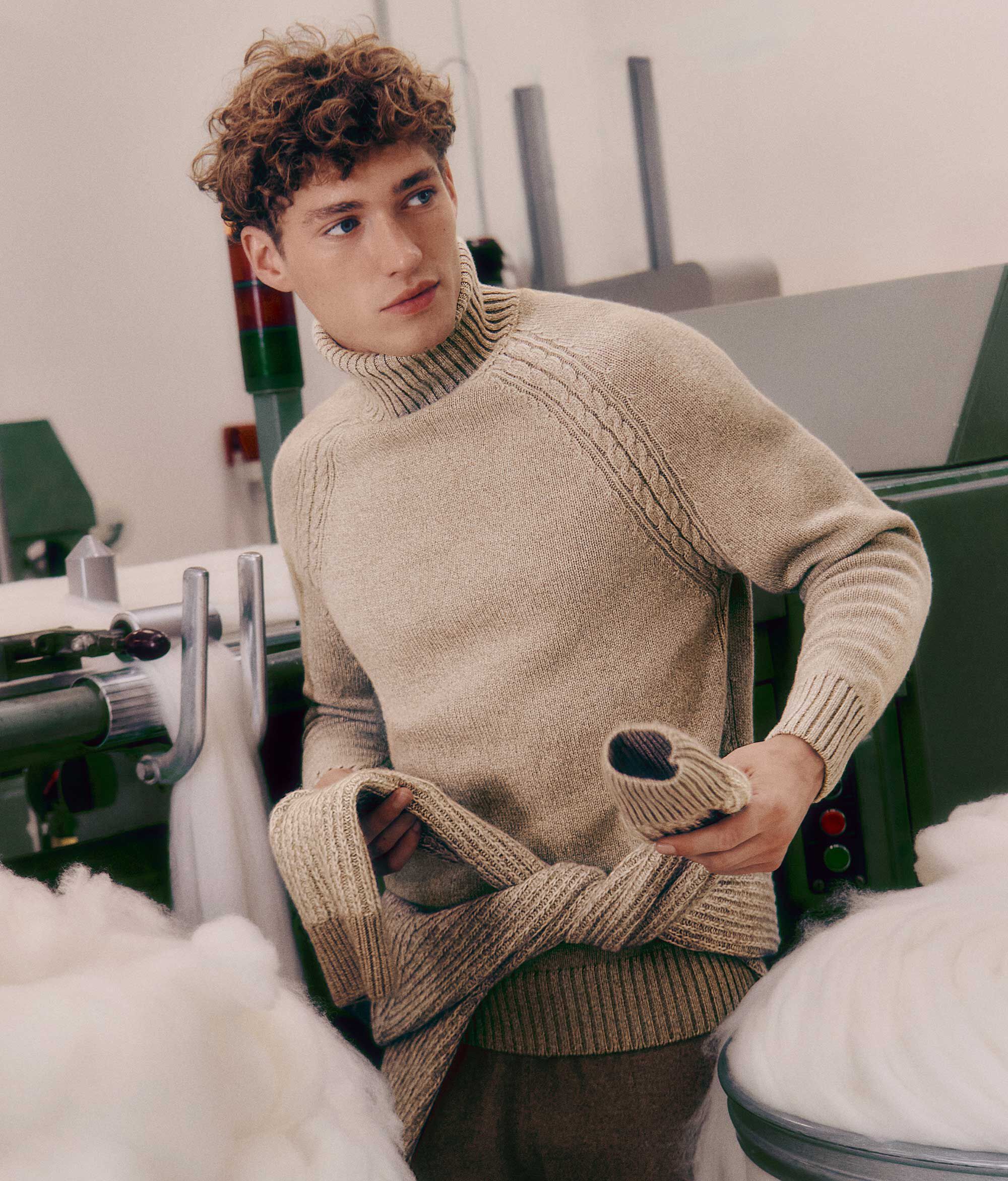 Dolcevita con trecce in Ultrasoft Undyed Cashmere