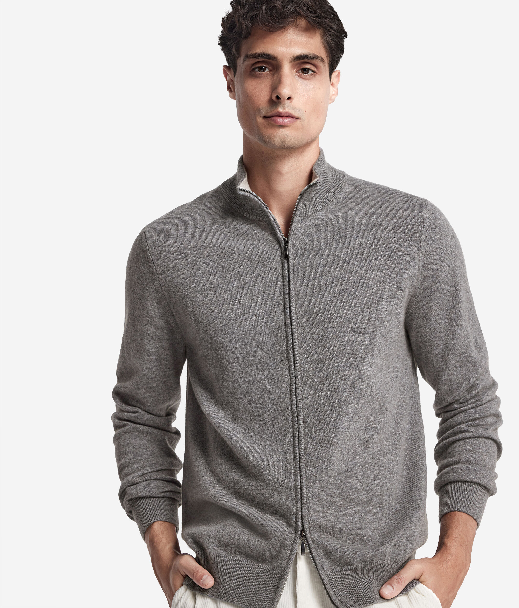 Erleben Sie mit diesem Cardigan aus Kaschmir für Herren ein Kleidungsstück, das nicht nur durch seine außergewöhnlich weiche Haptik überzeugt, sondern auch durch sein stilvolles Design besticht. Die verwendete Kaschmir Ultrasoft-Qualität sorgt für ein angenehmes Tragegefühl, das Sie den ganzen Tag über begleitet. Die lange Ärmelkonstruktion und die normale Passform bieten ausreichend Bewegungsfreiheit und verleihen dem Modell eine lässige Eleganz, die vielseitig einsetzbar ist. Diese Strickjacke mit Reißverschluss darf in keiner Garderobe fehlen, denn sie vereint Komfort und Funktionalität auf eindrucksvolle Weise. Mit ihrem durchgehenden Reißverschluss lässt sie sich mühelos an- und ausziehen, und der Verschluss wirkt dabei als dezentes Stil-Element, das das moderne Erscheinungsbild unterstreicht. Der feine Kaschmir verleiht dem Cardigan eine zeitlose Optik, die in unterschiedlichen Situationen überzeugen kann. Dank der sorgfältigen Verarbeitung und der hochwertigen Garne bleibt die Jacke lange formstabil und behält ihre weiche Beschaffenheit. So entsteht ein langlebiges Kleidungsstück, das sich durch kompromisslose Qualität und ein anspruchsvolles Design auszeichnet. Entscheiden Sie sich für ein Modell, das den Spagat zwischen Komfort und Stil mühelos schafft und jedem Herrenoutfit eine besondere Note verleiht.