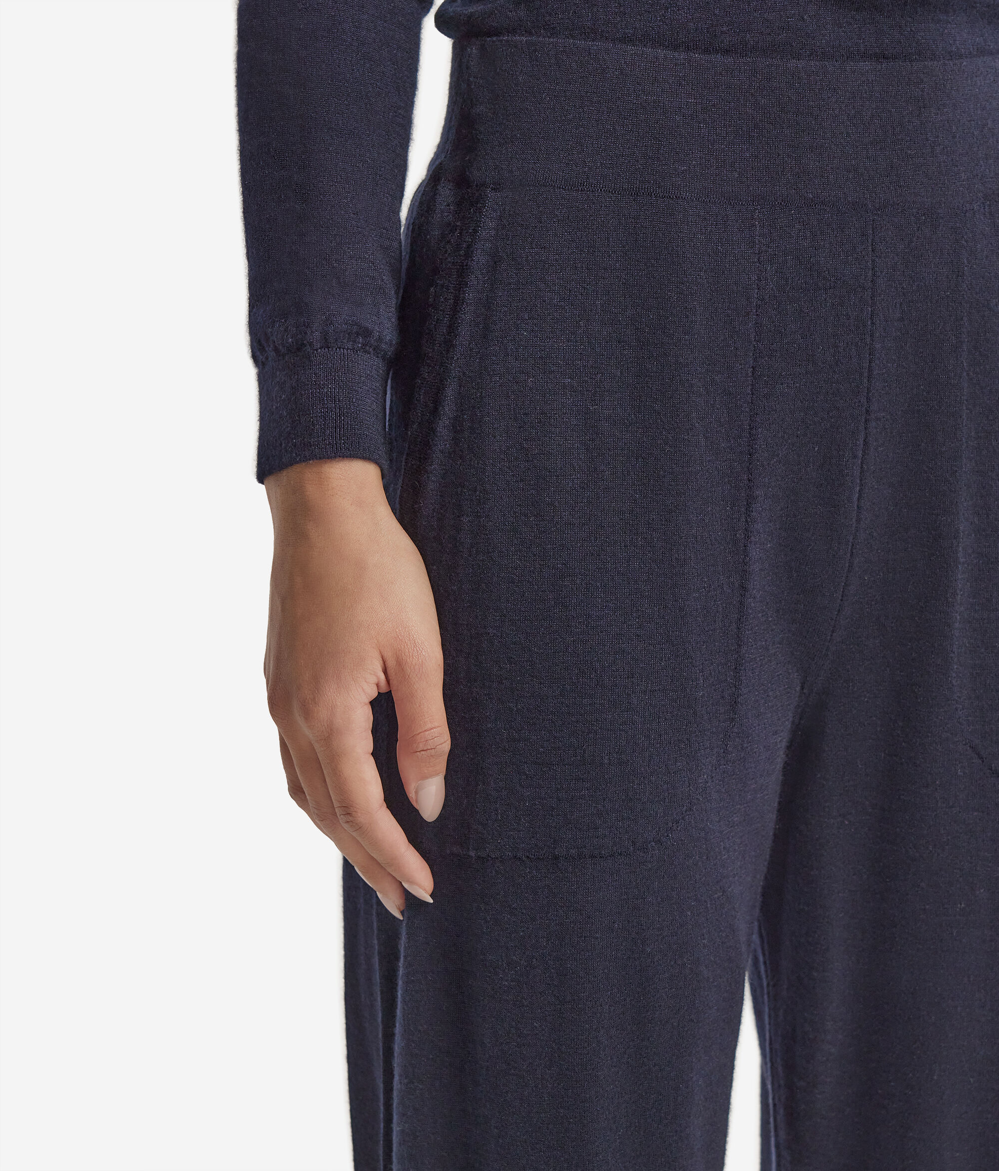 Baggy-Hose aus Kaschmir Ultrafine mit elastischem Bund und leicht abgesenktem Schritt. Rippstrickbündchen am Beinabschluss. Abgerundet durch schräge Leistentaschen. Weich fallende Passform.