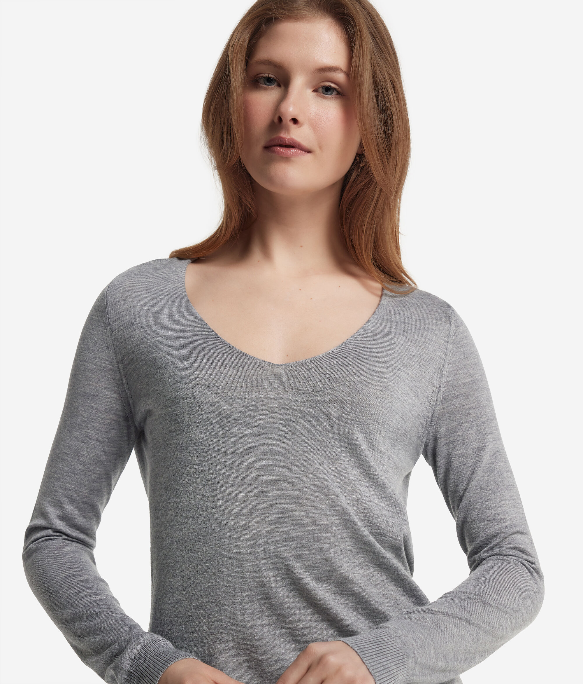 Dieser elegante Pullover für Damen besteht aus hochwertigem Kaschmir Ultrafine, einem edlen und leichten Material, das für seine Weichheit und exzellente Atmungsaktivität geschätzt wird. Der Damen Pullover ist mit einem tiefen V-Ausschnitt und langen Ärmeln ausgestattet und besitzt eine normale Passform sowie eine normale Schulterpartie. Gerippte Abschlüsse an Ausschnitt, Saum und Bündchen sorgen für einen zeitlosen Look. Dank eines handwerklichen Färbeverfahrens in den stückgefärbten Varianten erhält jedes Kleidungsstück eine einzigartige Farbnuance – kleine Abweichungen machen jeden der Damen Pullover zu einem Unikat. Mit diesem Kaschmir Pullover für Damen aus der Falconeri-Kollektion kombinieren Sie zeitlose Eleganz und vielseitigen Stil. Der Pullover mit V-Ausschnitt ist perfekt, um schlichte Outfits aufzuwerten – tragen Sie ihn über einem Hemd für einen raffinierten Büro-Look oder allein zu einer Jeans für lässige Eleganz. Die feinen Farben lassen sich mühelos mit verschiedensten Accessoires und Jacken kombinieren. Ob an kühlen Herbsttagen oder als leichter Begleiter im Frühling – dieser Damen Pullover mit V-Ausschnitt ist ein unverzichtbares Basic, das Ihrem Kleiderschrank eine luxuriöse Note verleiht. Falconeri steht für exklusive Materialien und perfekte Verarbeitung – spüren Sie den Unterschied!