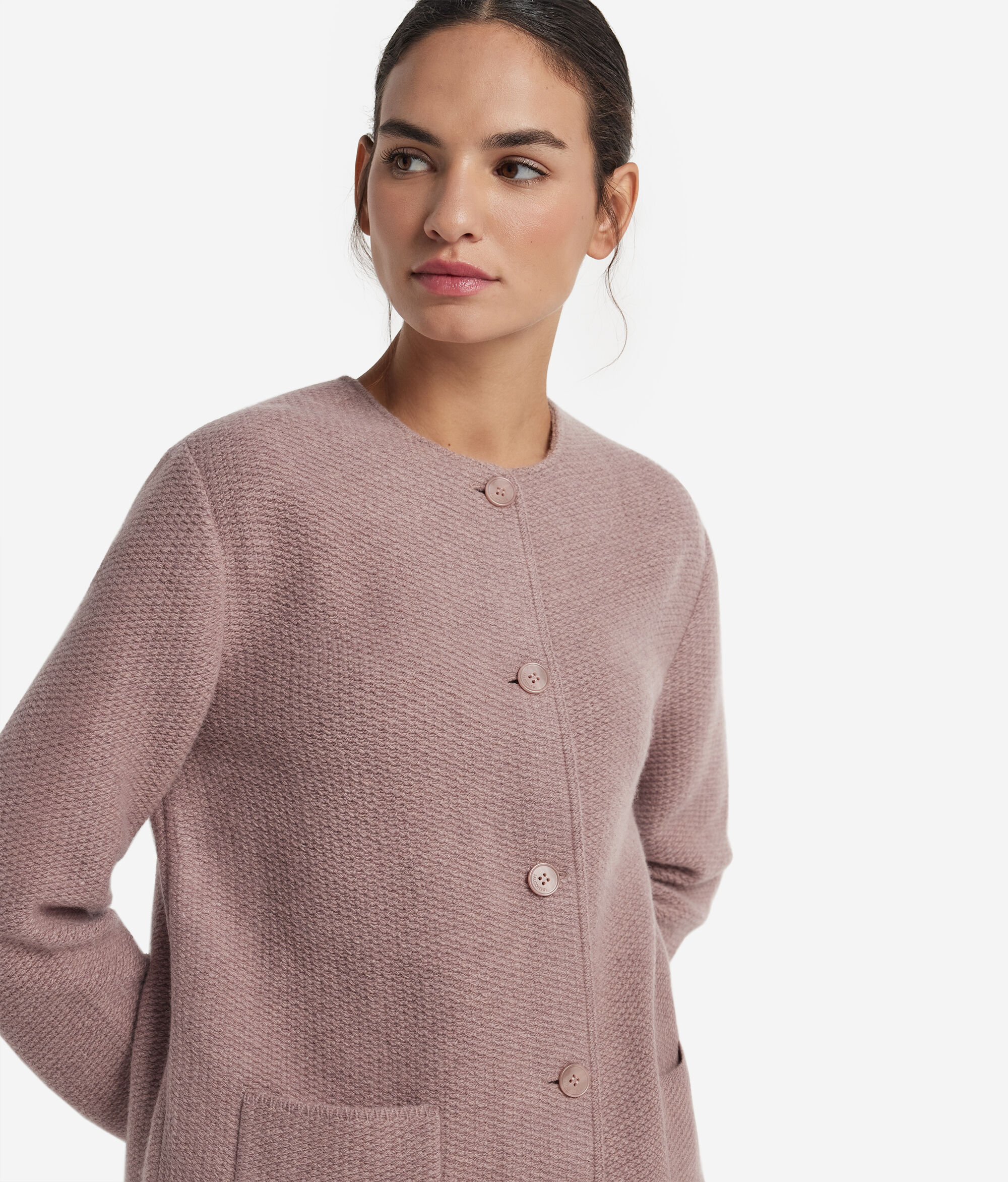 Dieser aus einem edlen Mix aus Wolle und Kaschmir Ultrasoft gefertigte Blazer vereint Weichheit und Raffinesse. Der schlichte Rundhalsausschnitt und die Knopfleiste vorne sorgen für einen schlichten und vielseitigen Look. Die vorne aufgesetzten Taschen sorgen für einen praktischen Touch, während die normale Schulterpartie und die langen Ärmel eine bequeme und ausgewogene Passform sicherstellen. Mit der Länge bis oberhalb der Hüfte und einer normalen Passform ist es das ideale Kleidungsstück für alle, die sich eine perfekte Balance zwischen Stil und Alltagstauglichkeit wünschen.