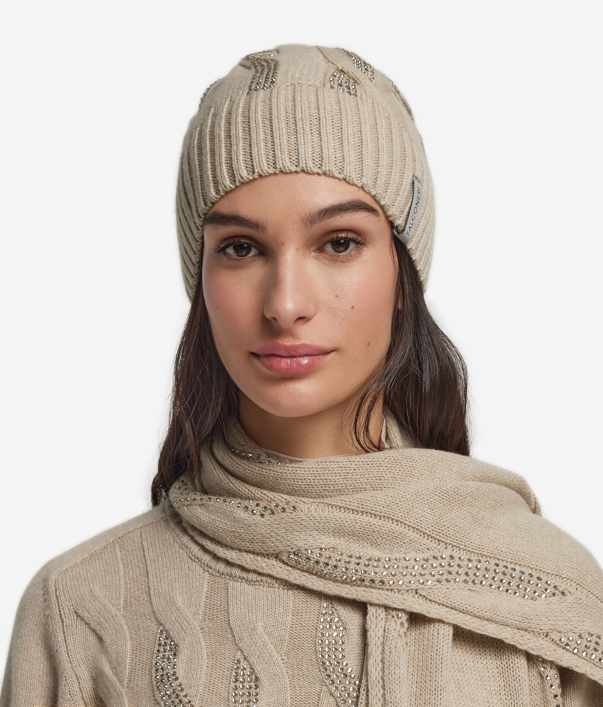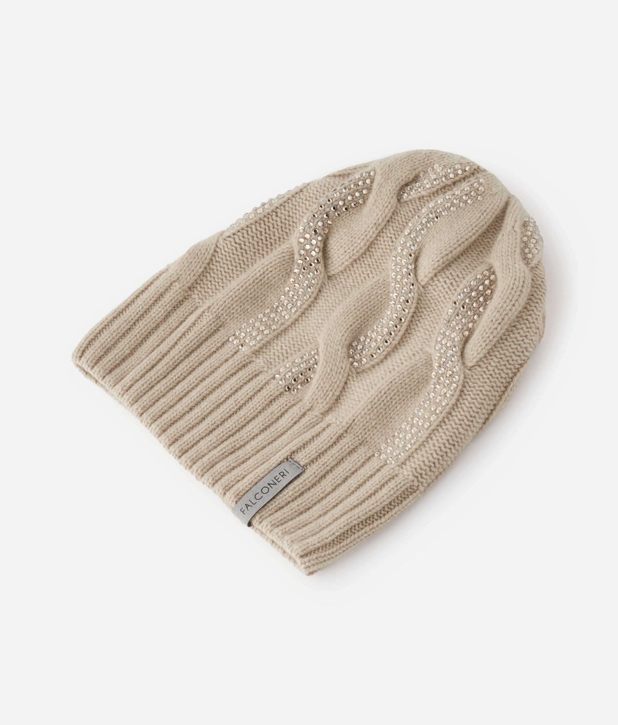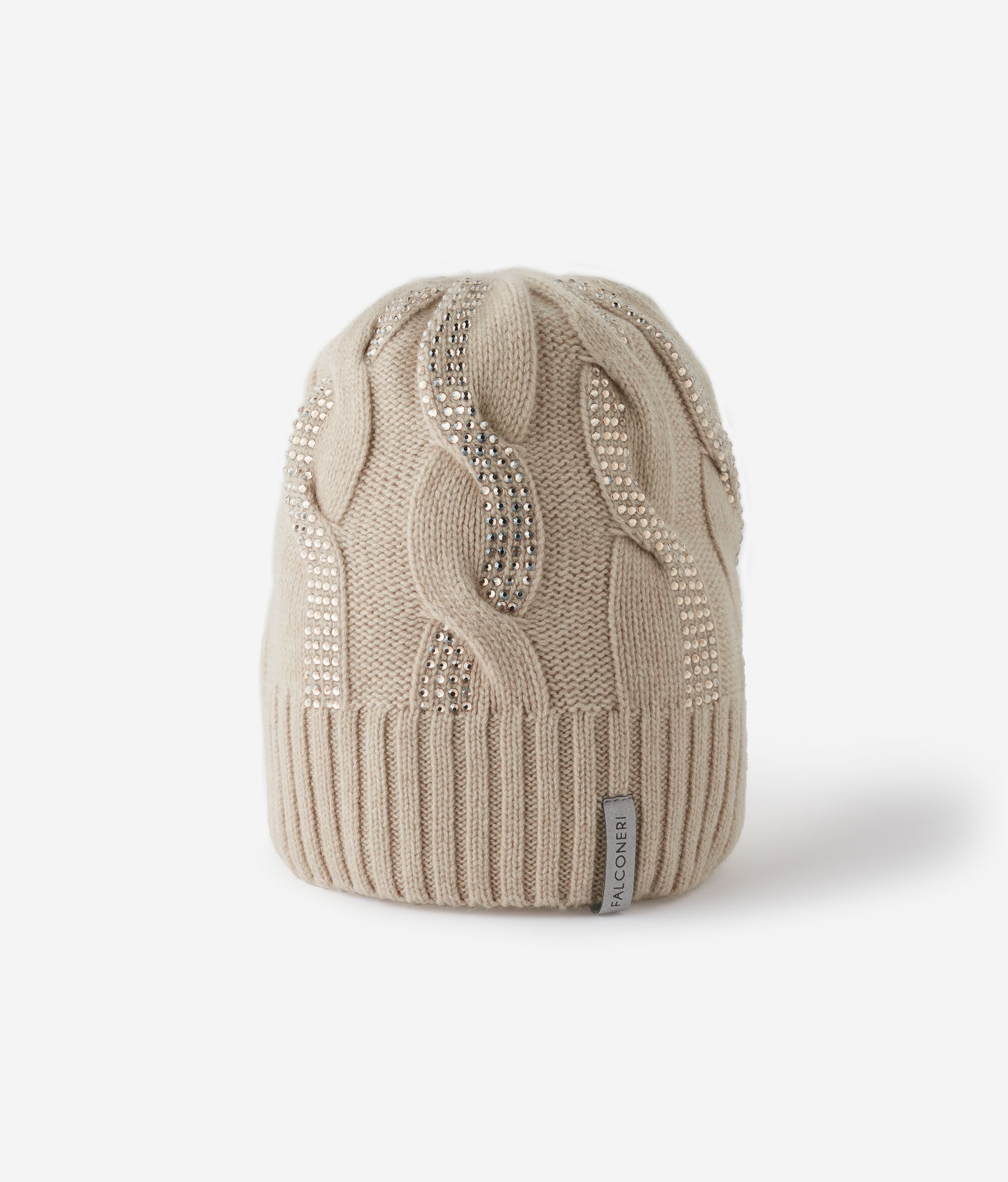 Čepice s copánkováním a štrasovými kamínky z kašmíru ultrasoft