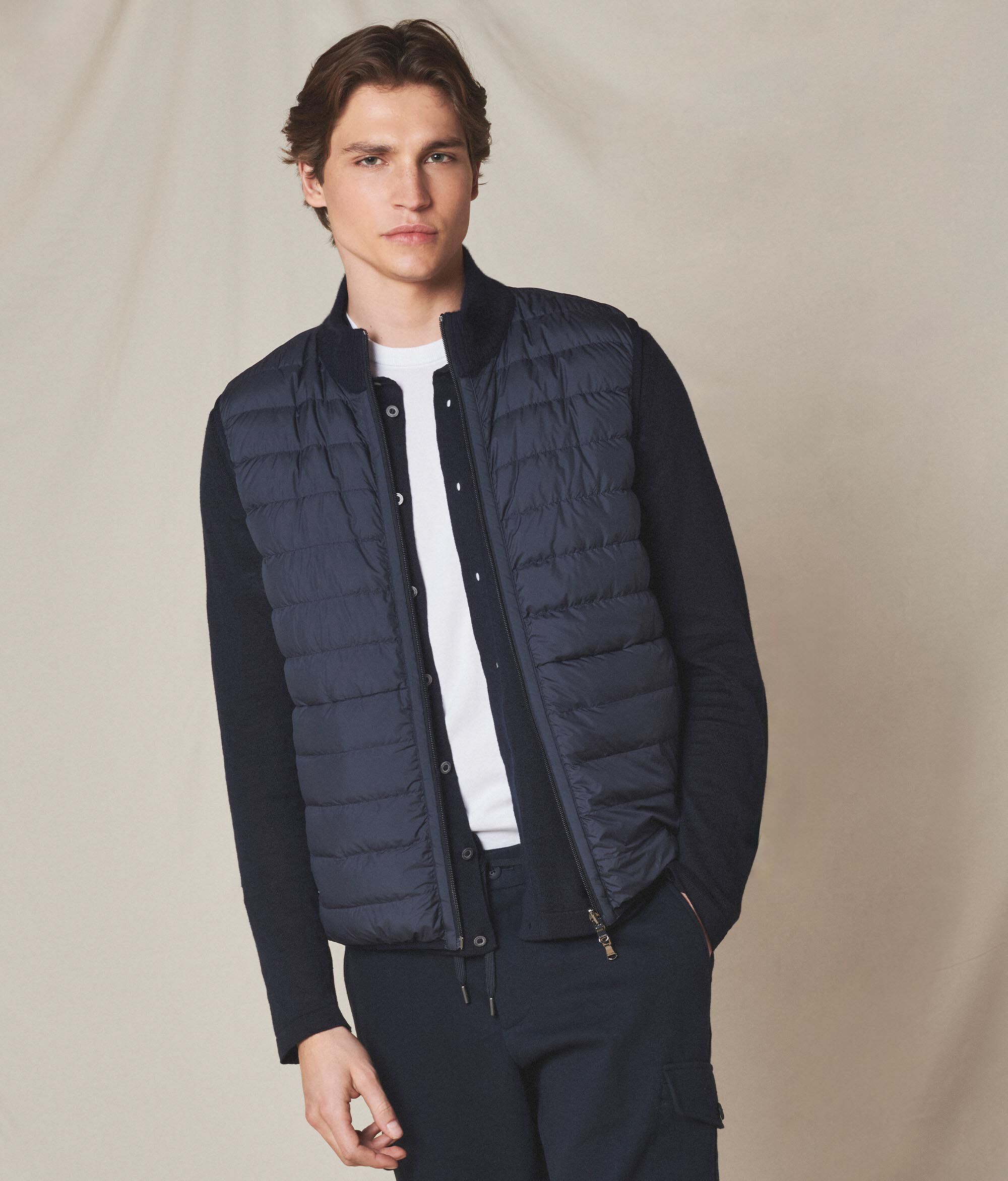 Falconeri nabízí novou verzi univerzální a jedinečné pánské péřové vesty. Tento sportovní model, v němž se dokonale snoubí funkčnost a elegance, je ozvláštněn prvky z kašmíru Ultrafine. Vesta je oboustranná, a budete si tak moct vždy vybrat, do jakého stylu se vyladíte. Je ideální na přechodná období a každému vašemu outfitu dodá punc vytříbenosti!