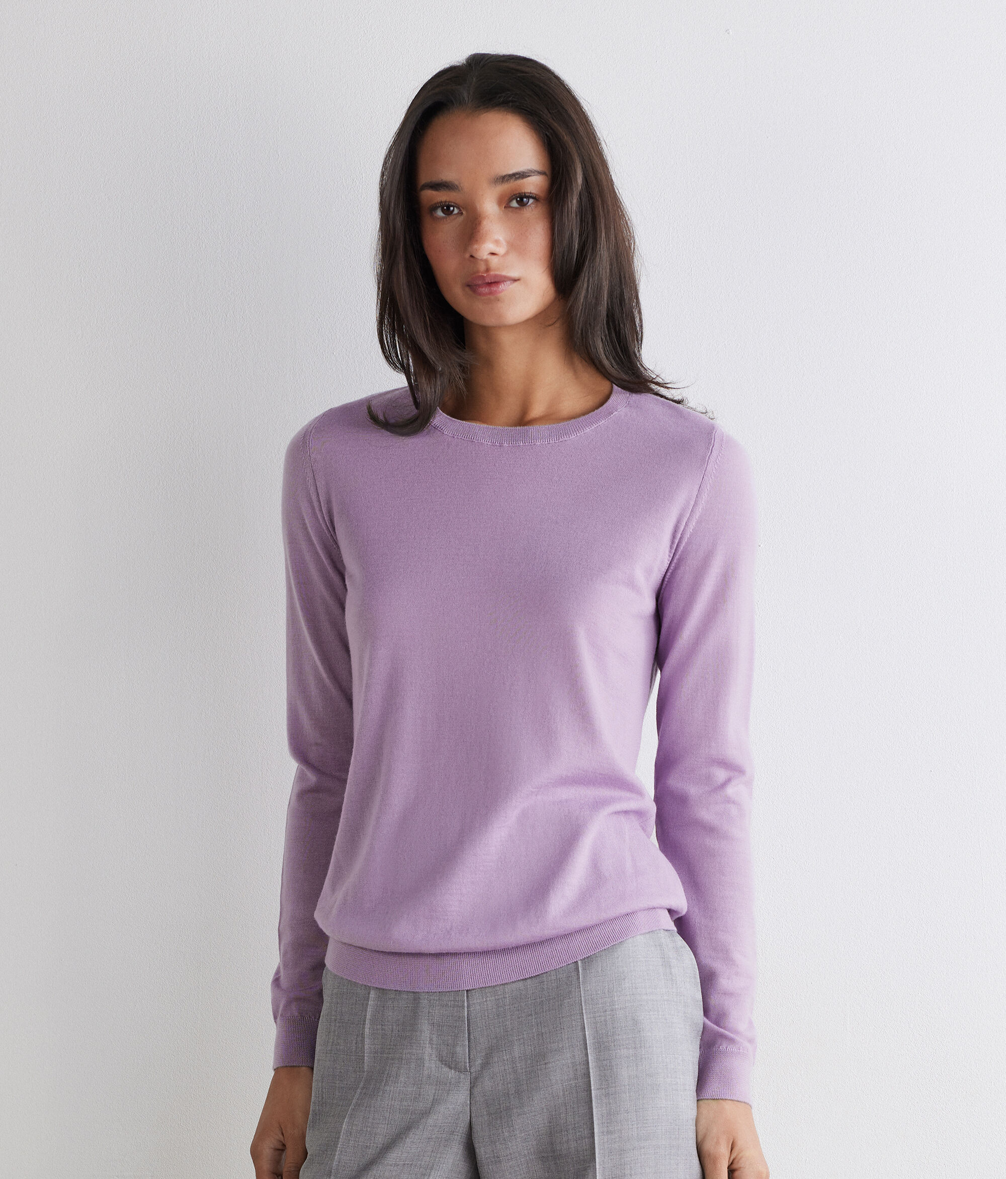 Svetřík s kulatým výstřihem, vyhotovený z kašmíru ultrafine, je klasickým a základním kouskem šatníku. Je jedinečný díky lehce zaoblené spodní části. Běžný střih je navržen tak, aby se pohodlně přizpůsobil křivkám a zajistil bezchybný look.