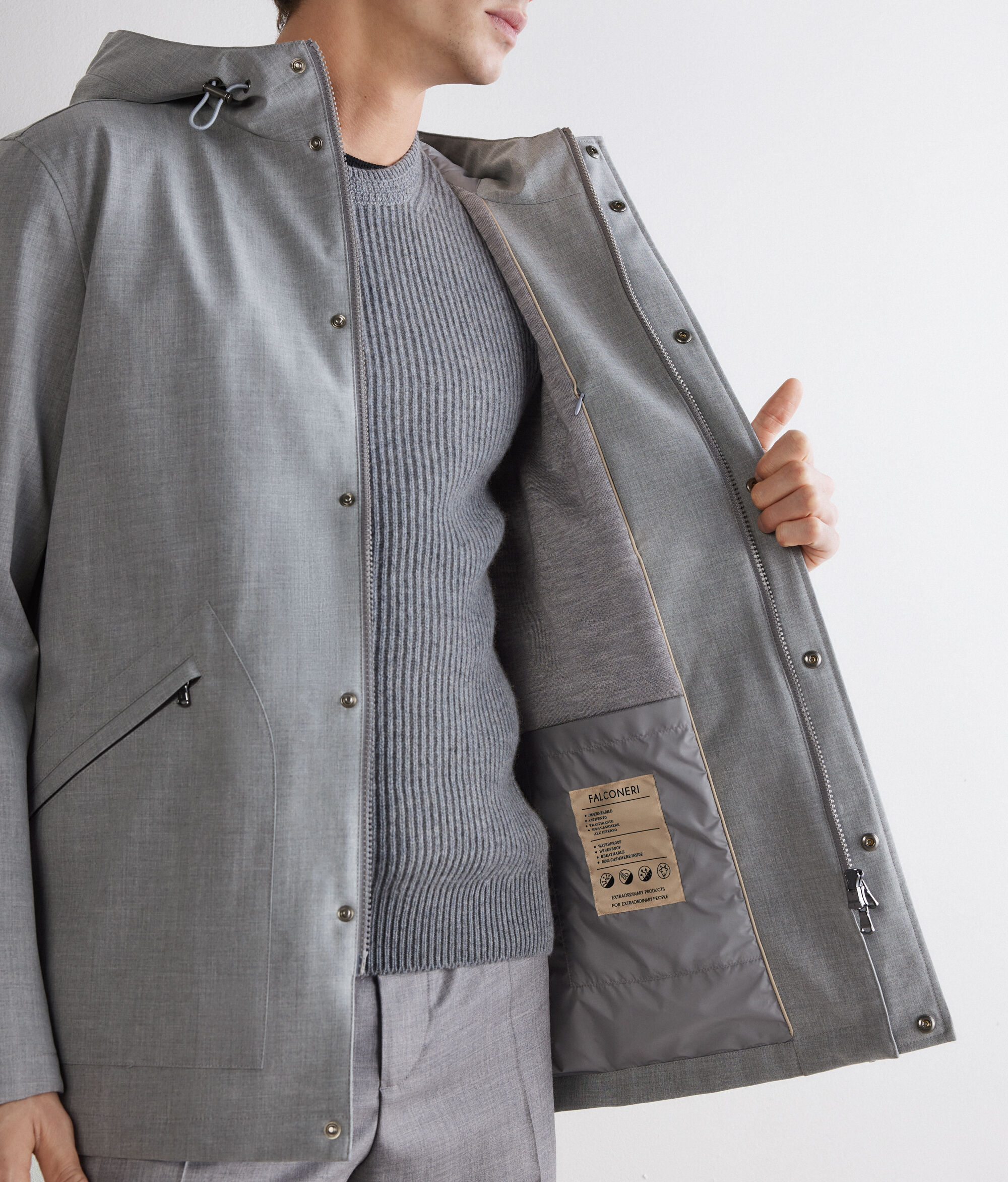 • Innenfutter aus Kaschmir Ultrafine im oberen Teil und Funktionsgewebe im unteren Teil und an den Ärmeln
