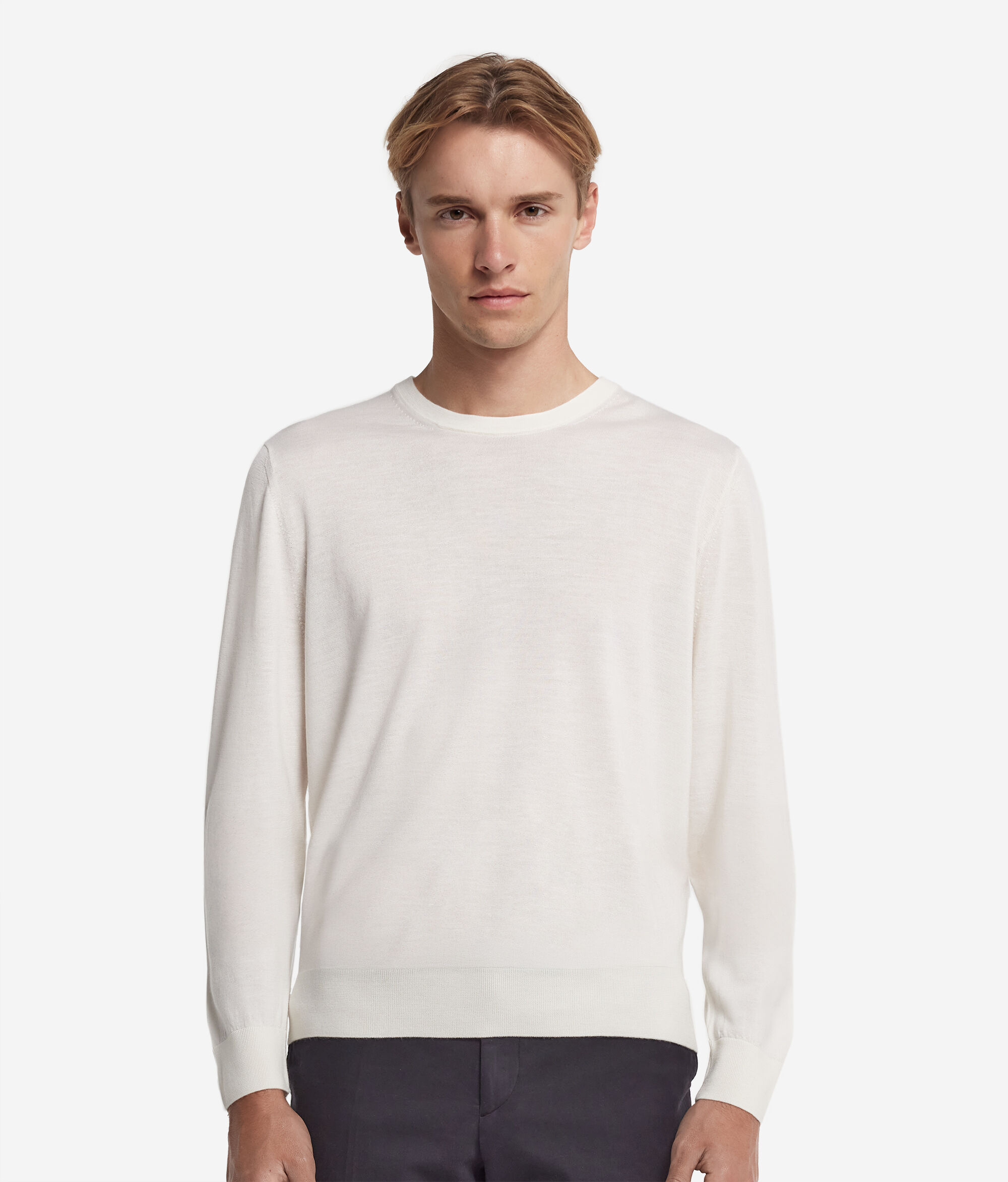 Die edle Naturfaser des Kaschmir Ultrafine betont das zeitlose Design dieses Rundhalspullovers. Die weiche und auf der Haut kaum spürbare Faser bietet eine perfekte Balance zwischen Leichtigkeit und kuscheliger Wärme. Das vielseitige und elegante Kleidungsstück für Herren darf in keinem Kleiderschrank fehlen und kann perfekt alleine getragen werden oder unter einer Jacke für einen besonderen Look für jeden Anlass.