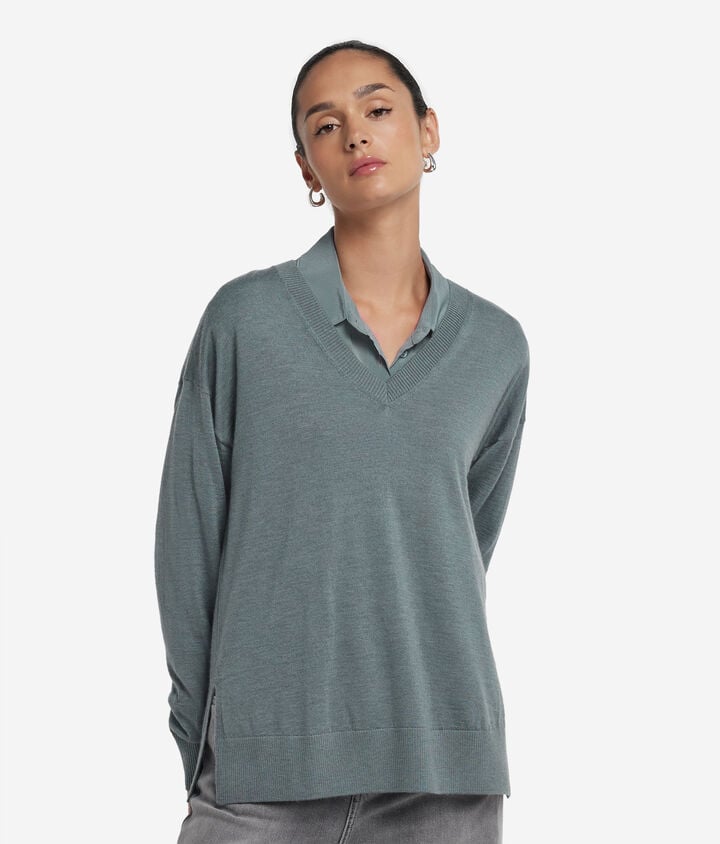 Pullover mit V-Ausschnitt und Schlitzen aus Kaschmir