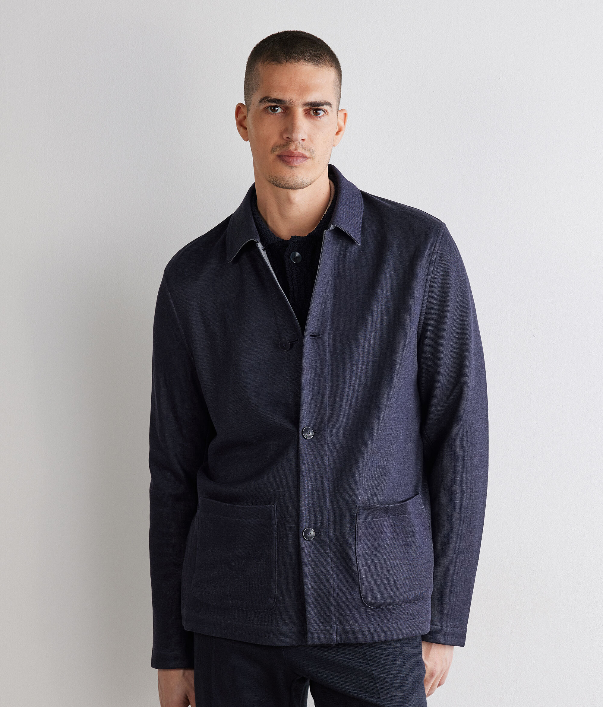 Shirt jacket made from cotton linen, perfect for a versatile and contemporary style. Two-tone and reversible, it features a shirt collar with a half circle at the back and a central four-button fastening. Interior and exterior patch pockets complete the design, while the regular fit follows the figure naturally.