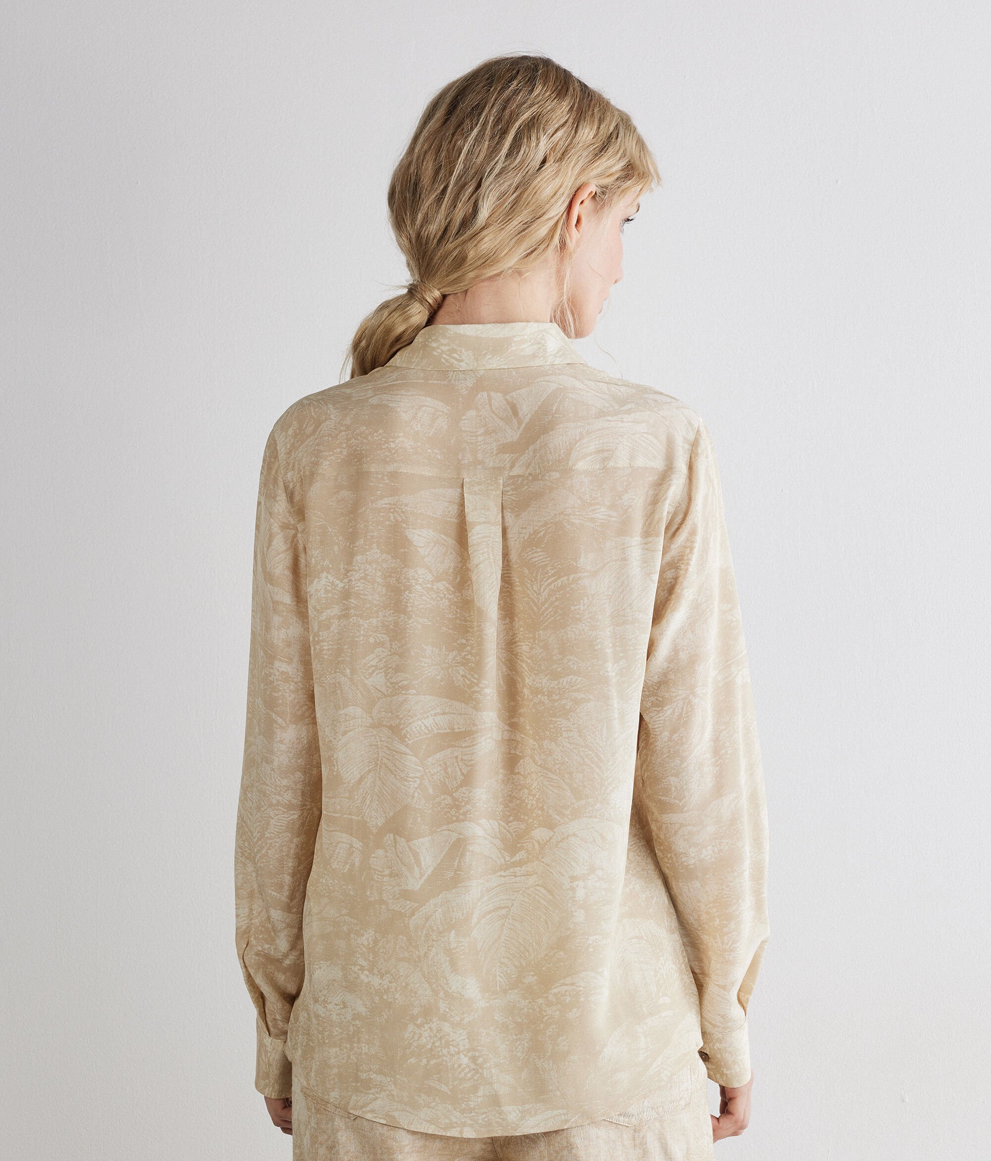 Created in printed silk, this shirt offers a distinctive and refined look, perfect for those occasions when you want to stand out with style. The fabric features a natural elegance, enriched as it is by motifs that add personality to the garment. The classic collar completes the traditional design, while the hidden button fastening contributes to maintaining a minimal and neat line. An ideal choice for those who love the elegance of silk combined with carefully considered tailoring details.