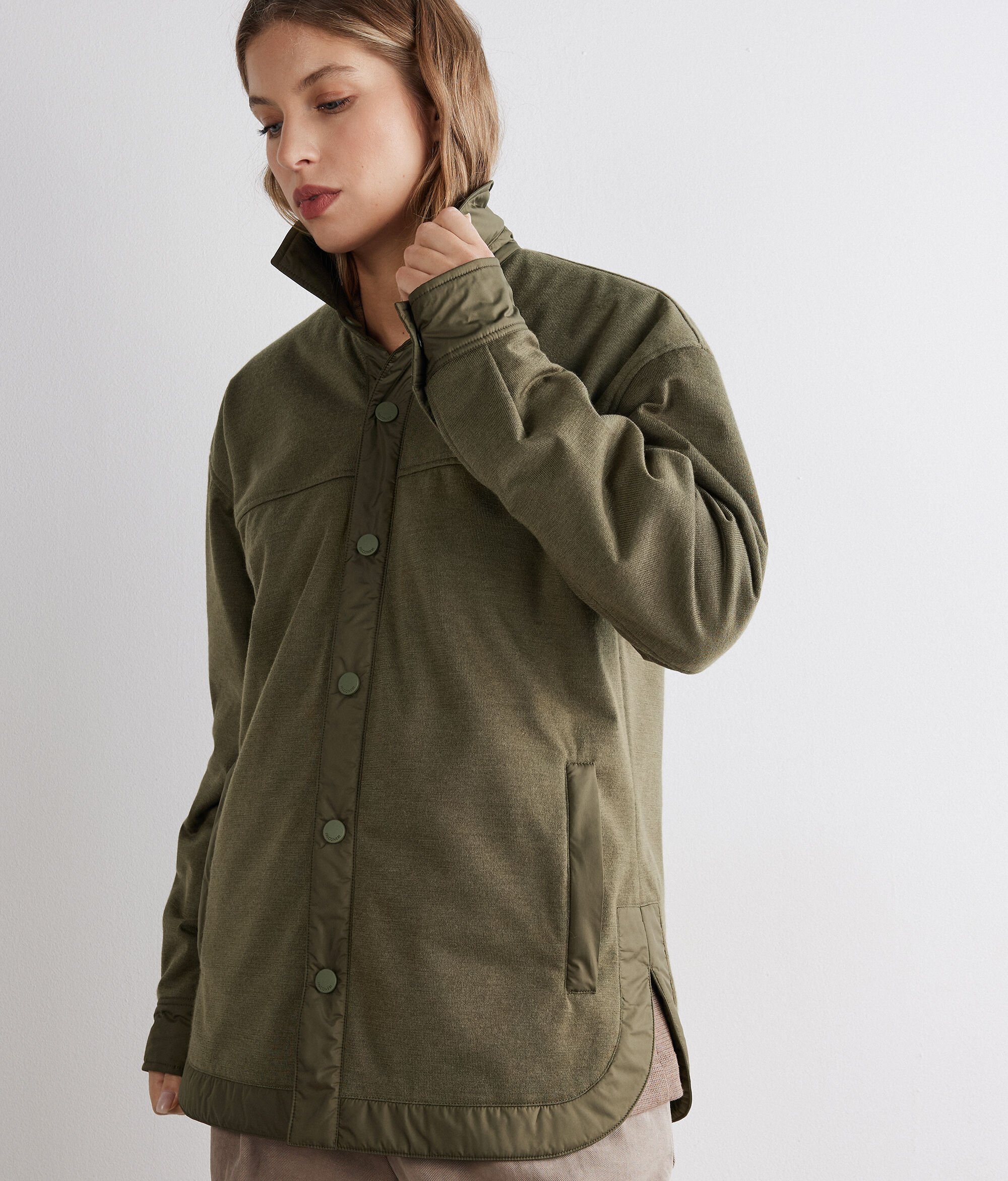 • Technical side with welt pockets with press stud and patch pocket on the chest with flap and press stud