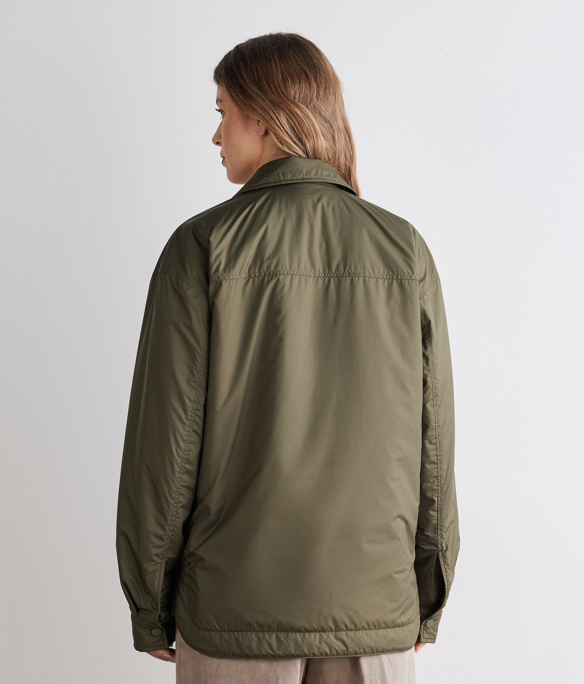 Reversible unisex jacket that blends functionality and luxury in a versatile and contemporary design. On one side, the water-repellent technical fabric guarantees protection and practicality, with welt pockets and a patch pocket on the chest; on the other side, the Ultrafine Cashmere envelops with softness, completed by welt pockets with zip. Shirt collar, single-breasted closure, sleeves with darts and rounded hem at the hips define a refined and contemporary design.