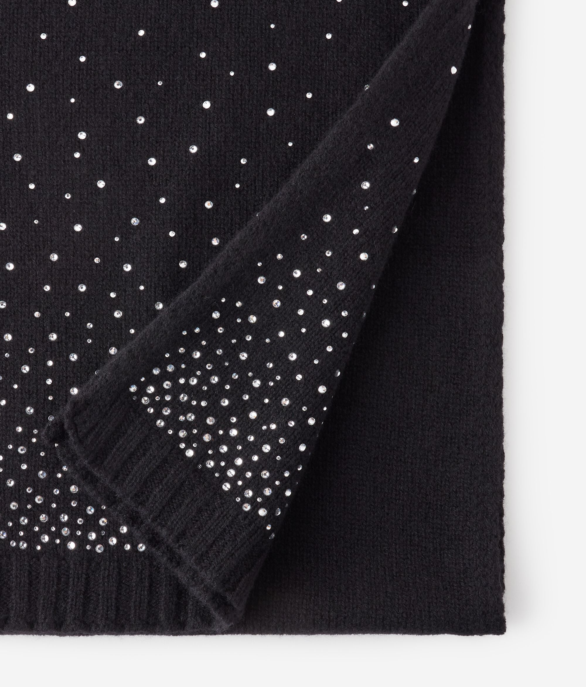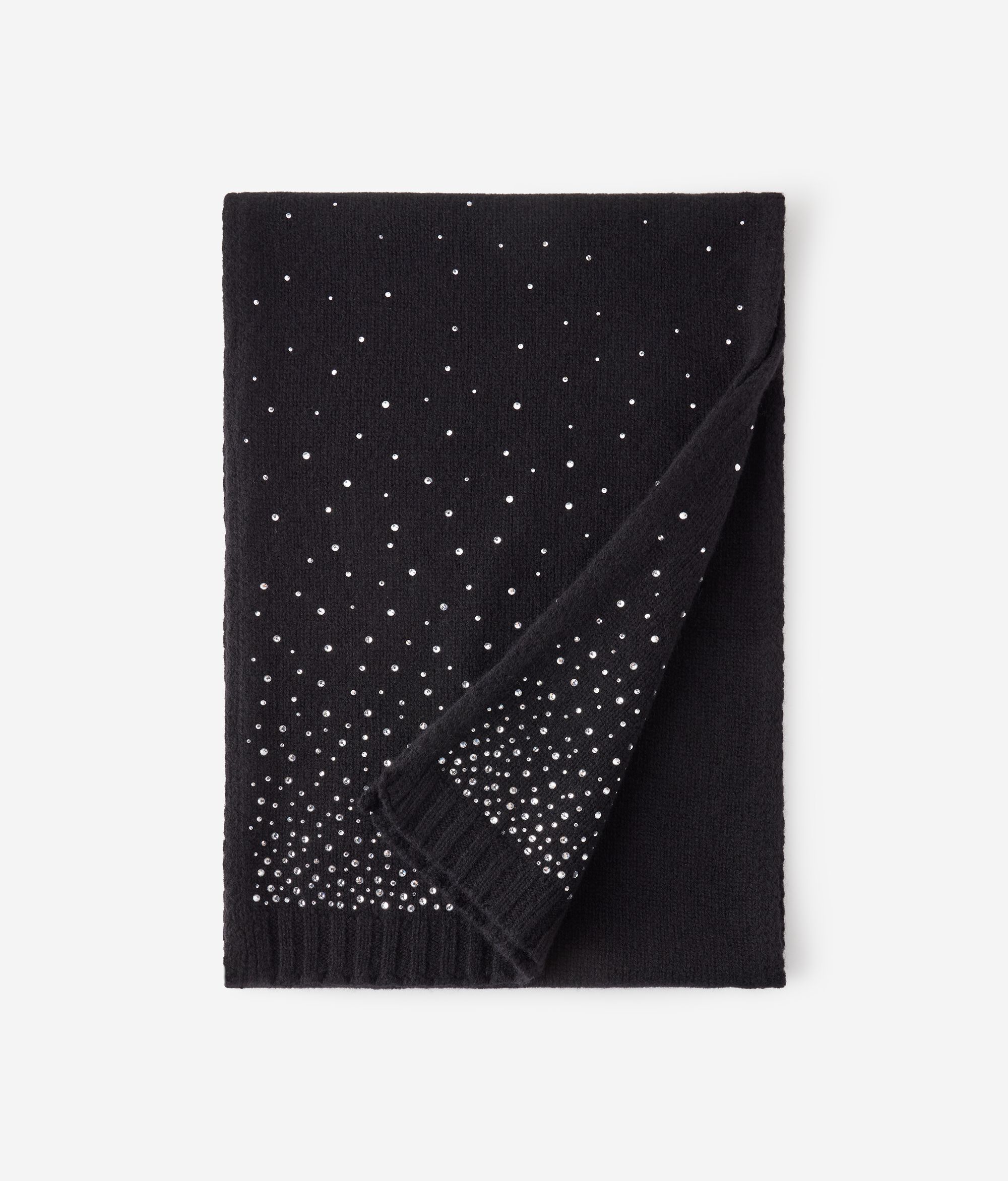 Luxosa i envoltant, aquesta bufanda de cashmere ultrasoft és l'accessori ideal per a una sensació de calor i protecció durant els mesos més freds. Als extrems, un elegant detall d'estrassos lluminosos amb efecte degradat capta la llum, creant un efecte brillant que dona un toc de sofisticació única.
