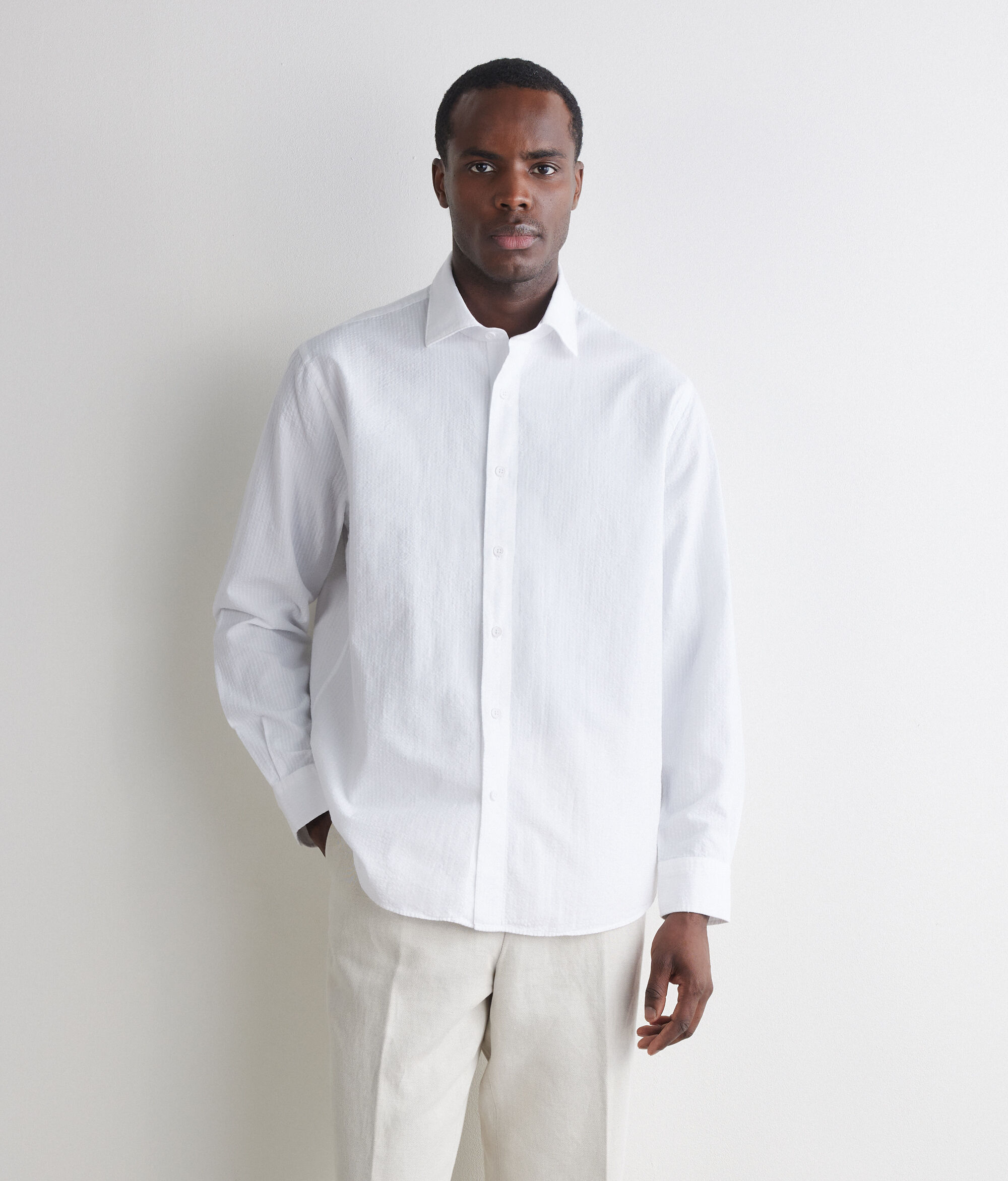 Camisa seersucker amb textura ondulada, d'efecte frunzit, confeccionada amb cotó i de tall estàndard (100% cotó).