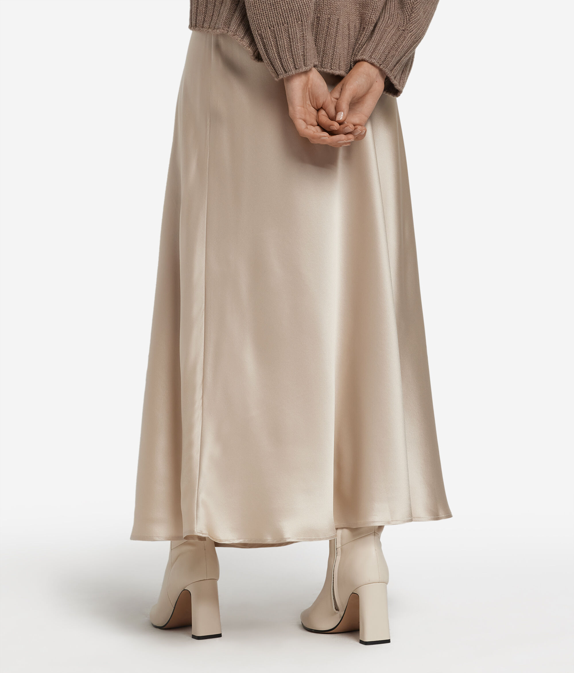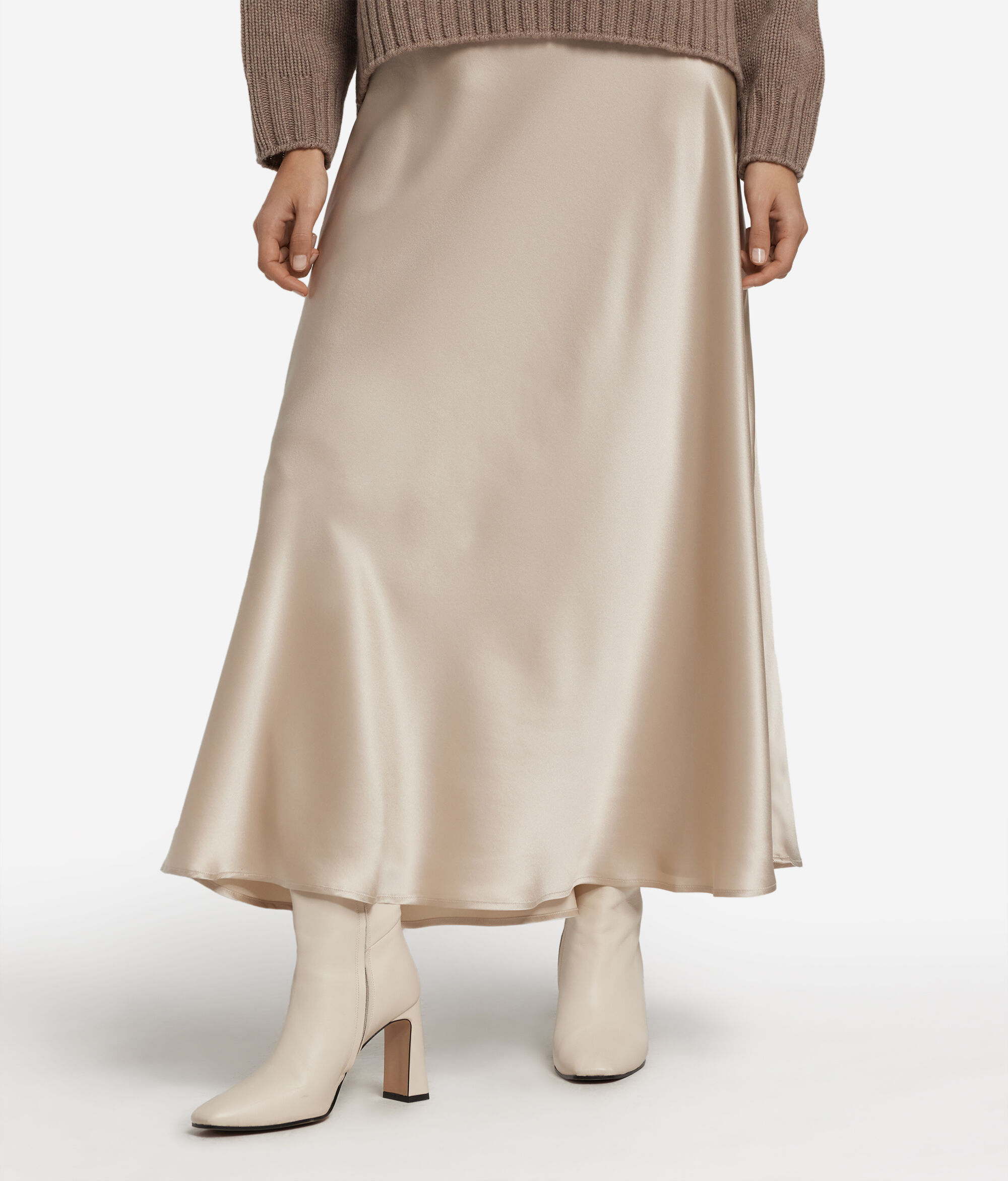 Descobreix l'elegància i la sofisticació d'aquesta faldilla confeccionada íntegrament amb ras de seda. El disseny es caracteritza per una banda elàstica a la cintura, que ofereix comoditat i adaptabilitat. La llargada fins a mitja cama li confereix un toc de classe que fa que sigui ideal tant de dia com de nit. El teixit de ras afegeix un acabat luxós i lleuger que garanteix un look sofisticat i atemporal.
