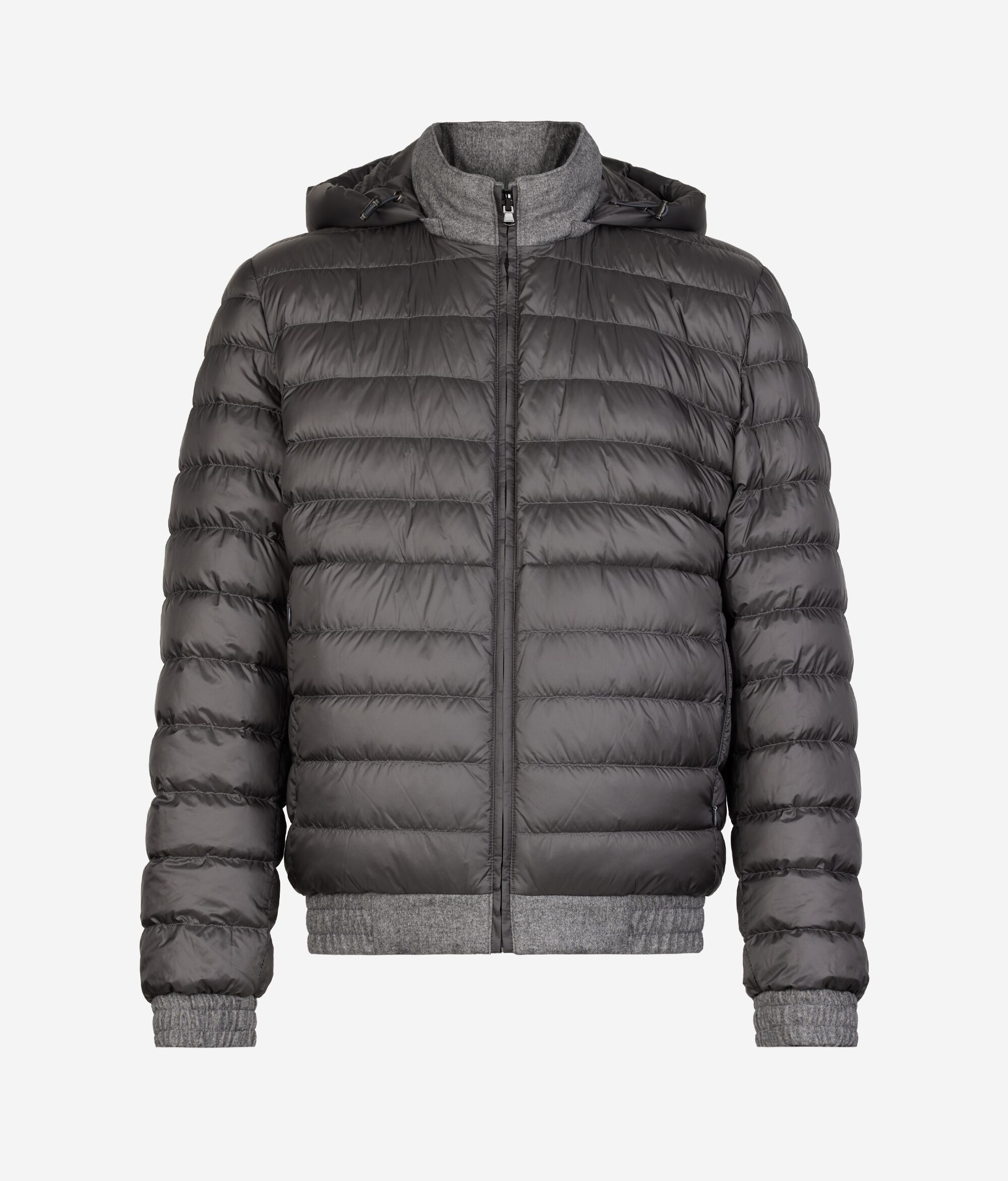 Confeccionada amb una combinació elegant de seda i cashmere, aquesta jaqueta fusiona elegància i practicitat. Reversible i farcida amb ploma, presenta un interior de teixit tècnic embuatat que garanteix calidesa i protecció. La caputxa extraïble amb cordó afegeix versatilitat, mentre que el tancament amb cremallera i les butxaques de trau en completen el disseny. El tall folgat la fa perfecta per a un estil dinàmic i contemporani.