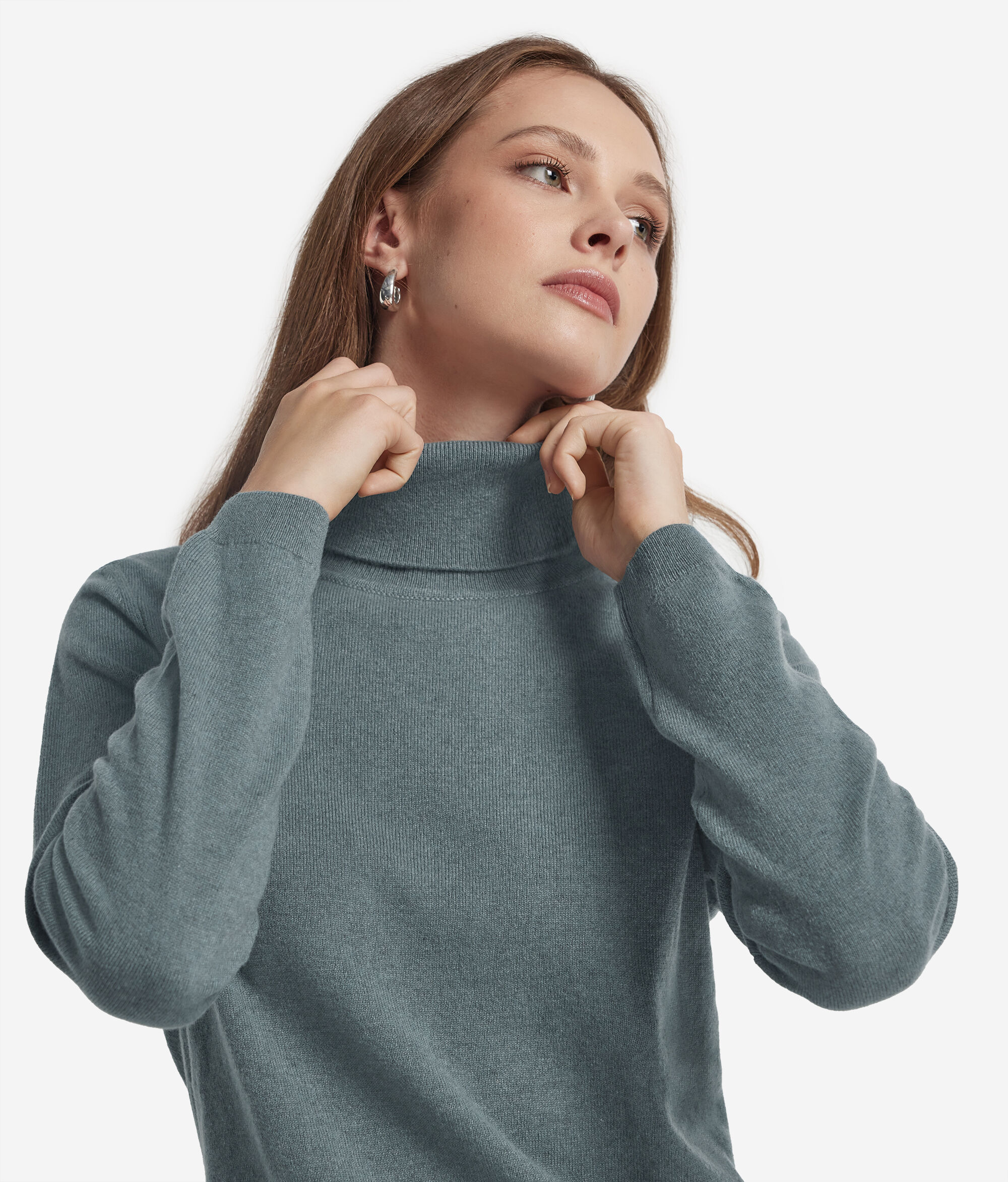 Símbol indiscutible de luxe i refinament, el Cashmere Ultrasoft realça les formes d'aquest jersei de coll de cigne. El disseny bàsic presenta un tall estàndard: embolcalla delicadament la silueta, destacant-ne la feminitat.