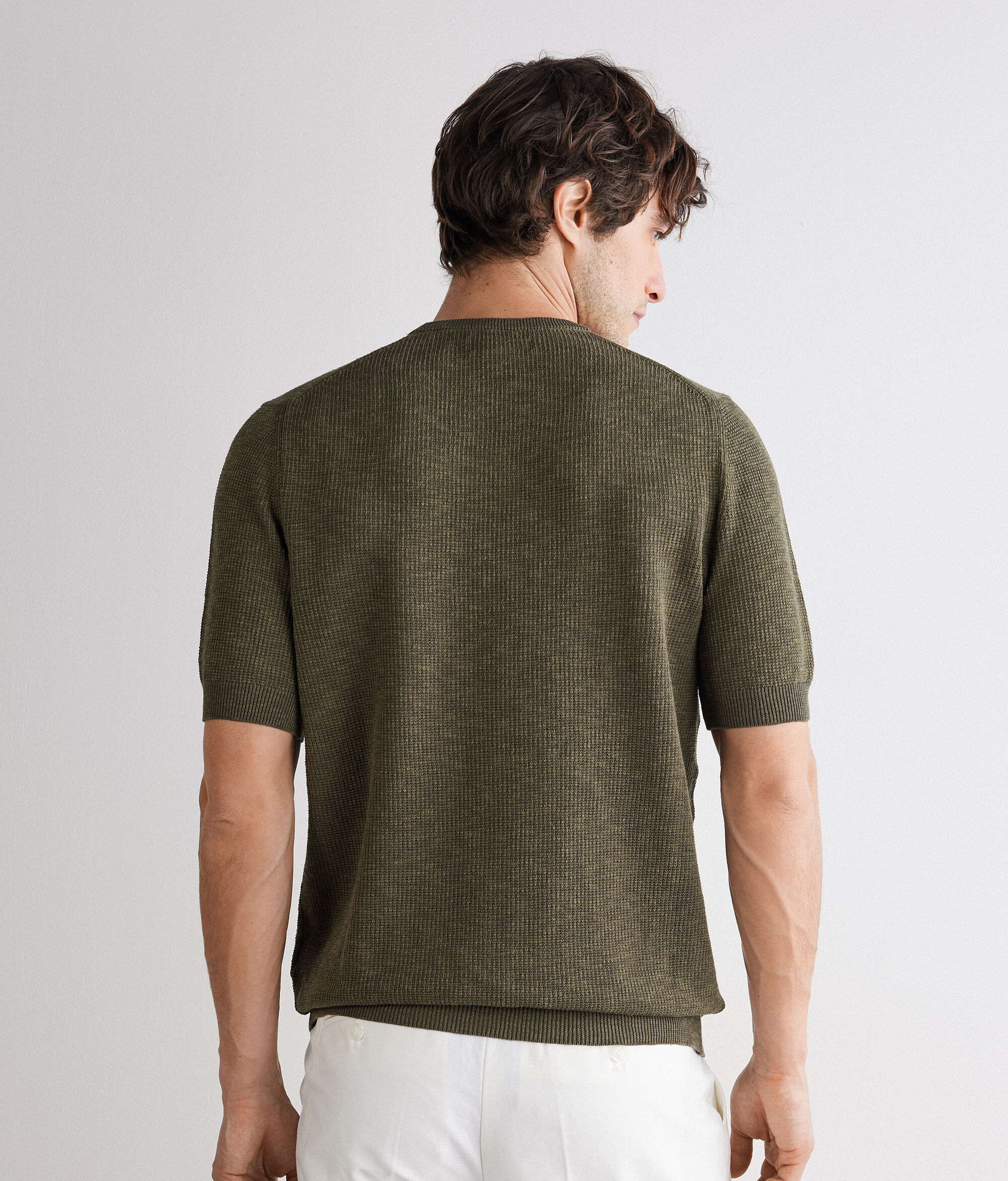 Samarreta confeccionada amb cotó amb punt gofrat (100% cotó). Els acabats de canalé caracteritzen aquest model de tall estàndard.
