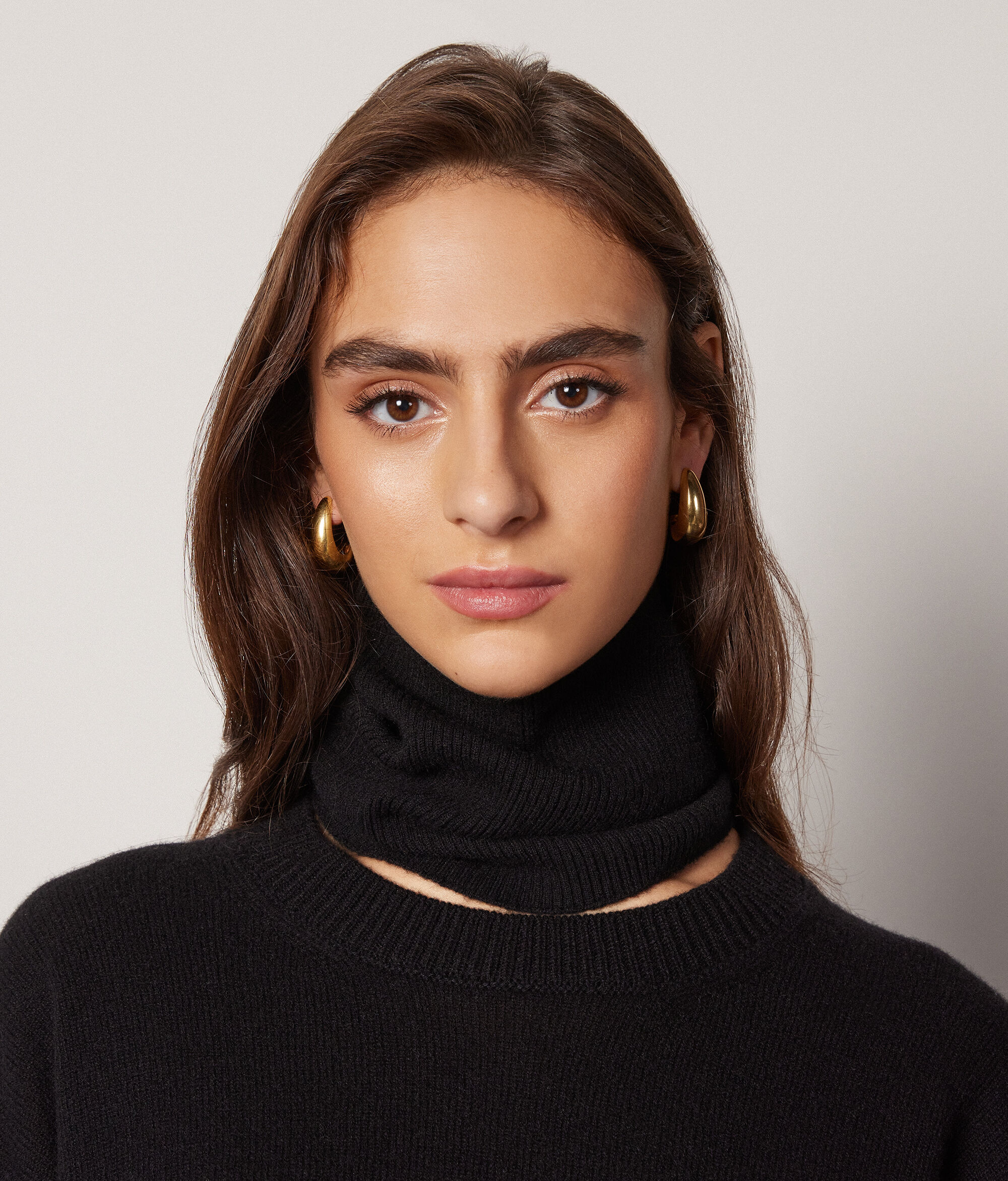 Tapaboques totalment confeccionat amb cashmere ultrasoft, càlid i envoltant, perfecte per combinar amb les peces d'abric de la col·lecció.