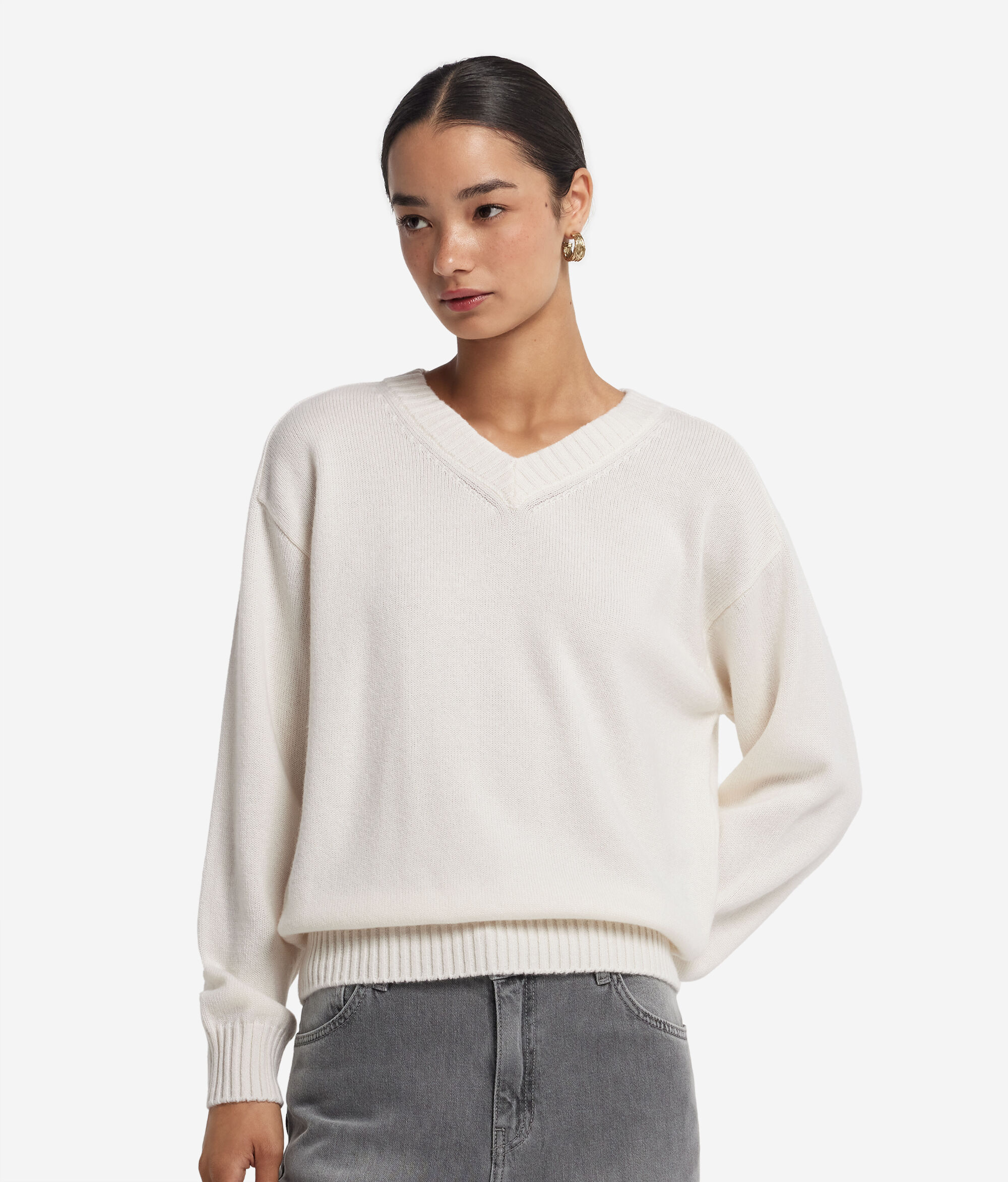 Jersey con cuello de pico y manga martillo de cashmere ultrasoft