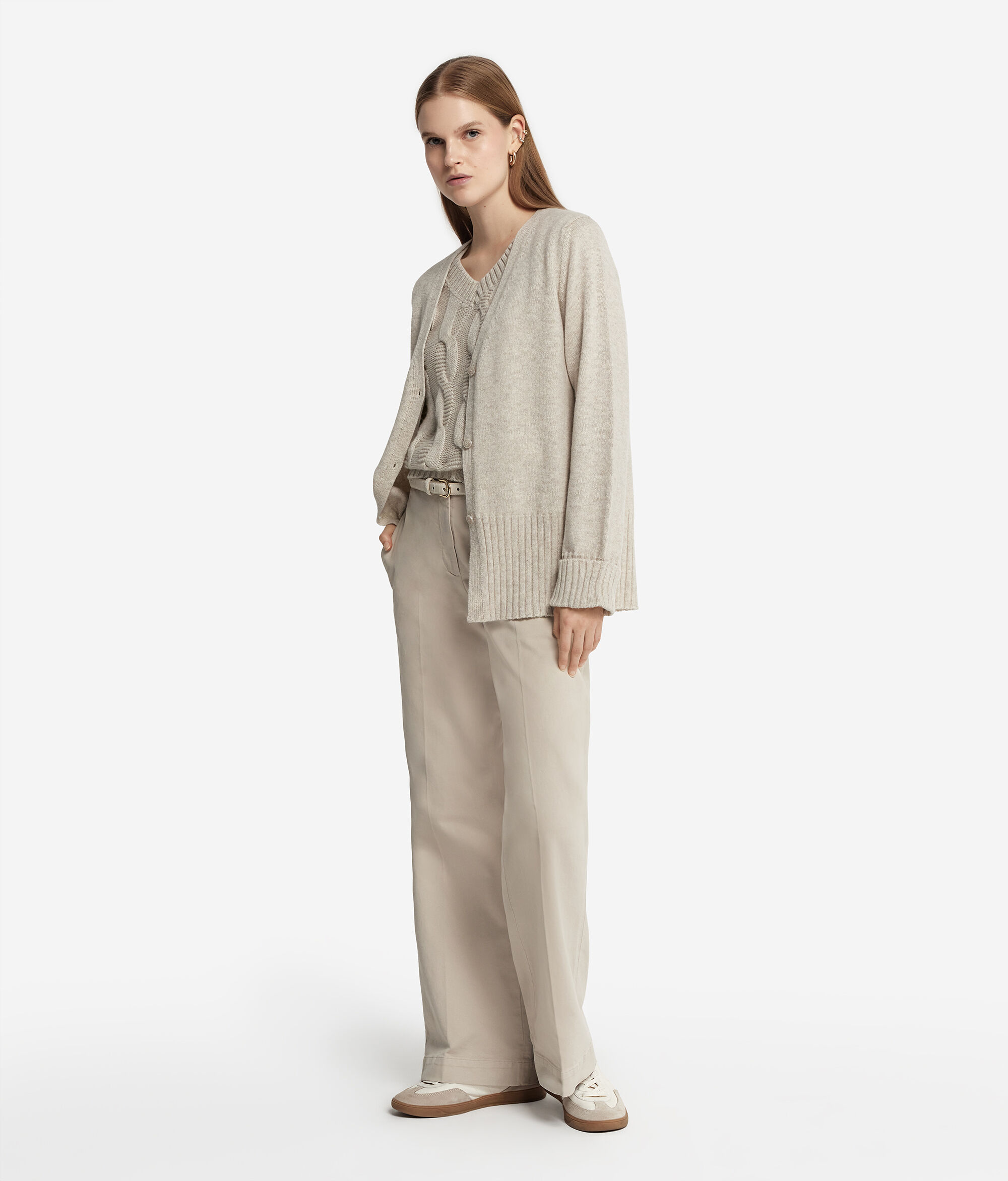 Para los días de entretiempo, un cárdigan de cashmere para mujer o un chaleco de cashmere serán perfectos para llevar sobre una camisa o un top sin mangas, siendo una capa ligera que brinda calidez sin sobrecargar el conjunto. Completa tu look con accesorios de cashmere como las bufandas y fulares, asegurando que tu conjunto esté perfectamente equilibrado y estilizado para cualquier ocasión.