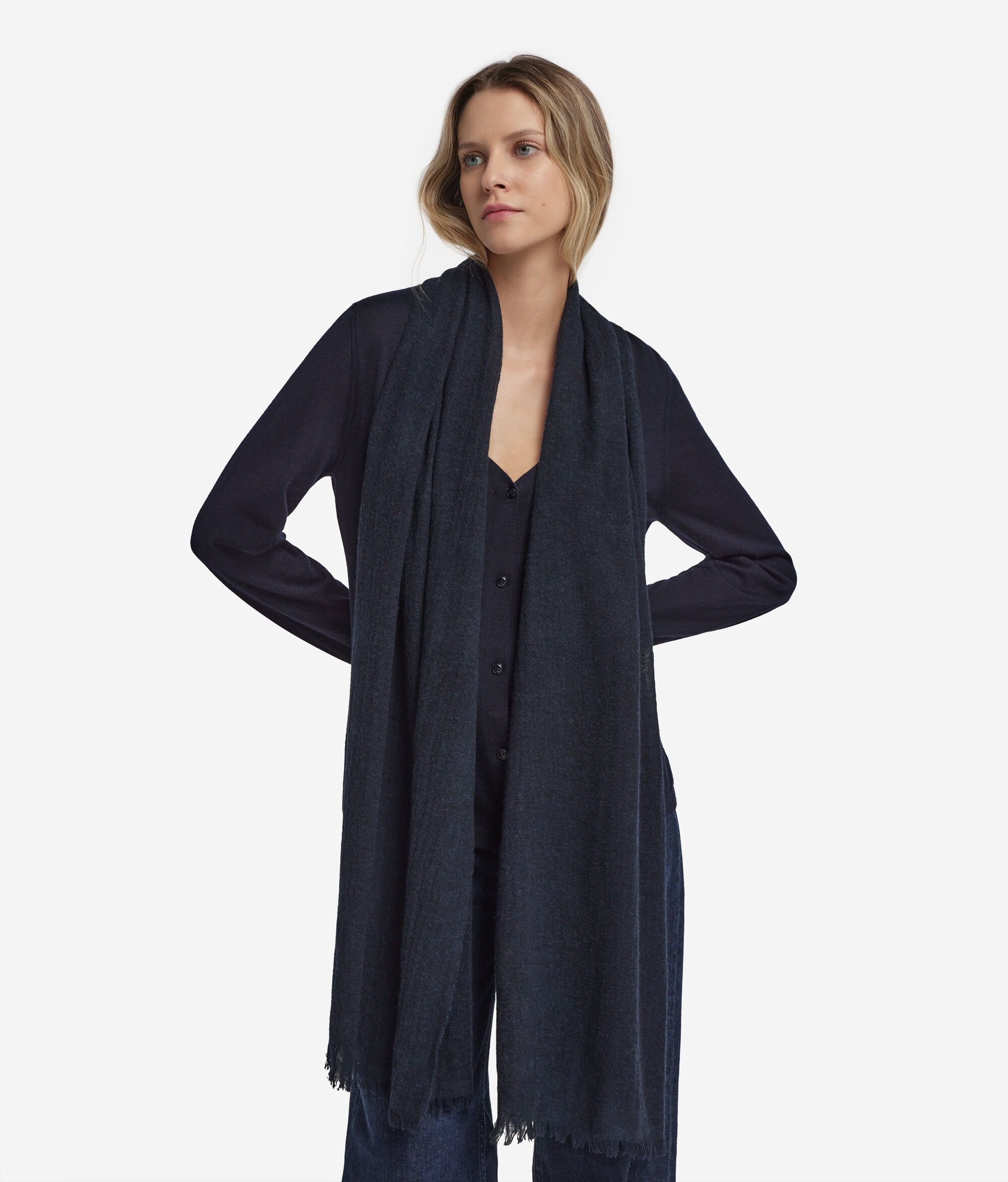 Esta bufanda, realizada en suave cashmere ultrafine, es el accesorio ideal para aportar un toque de estilo y elegancia a tus looks. Ligera pero increíblemente cálida, envuelve con delicadeza el cuello y lo protege durante las jornadas más frías.